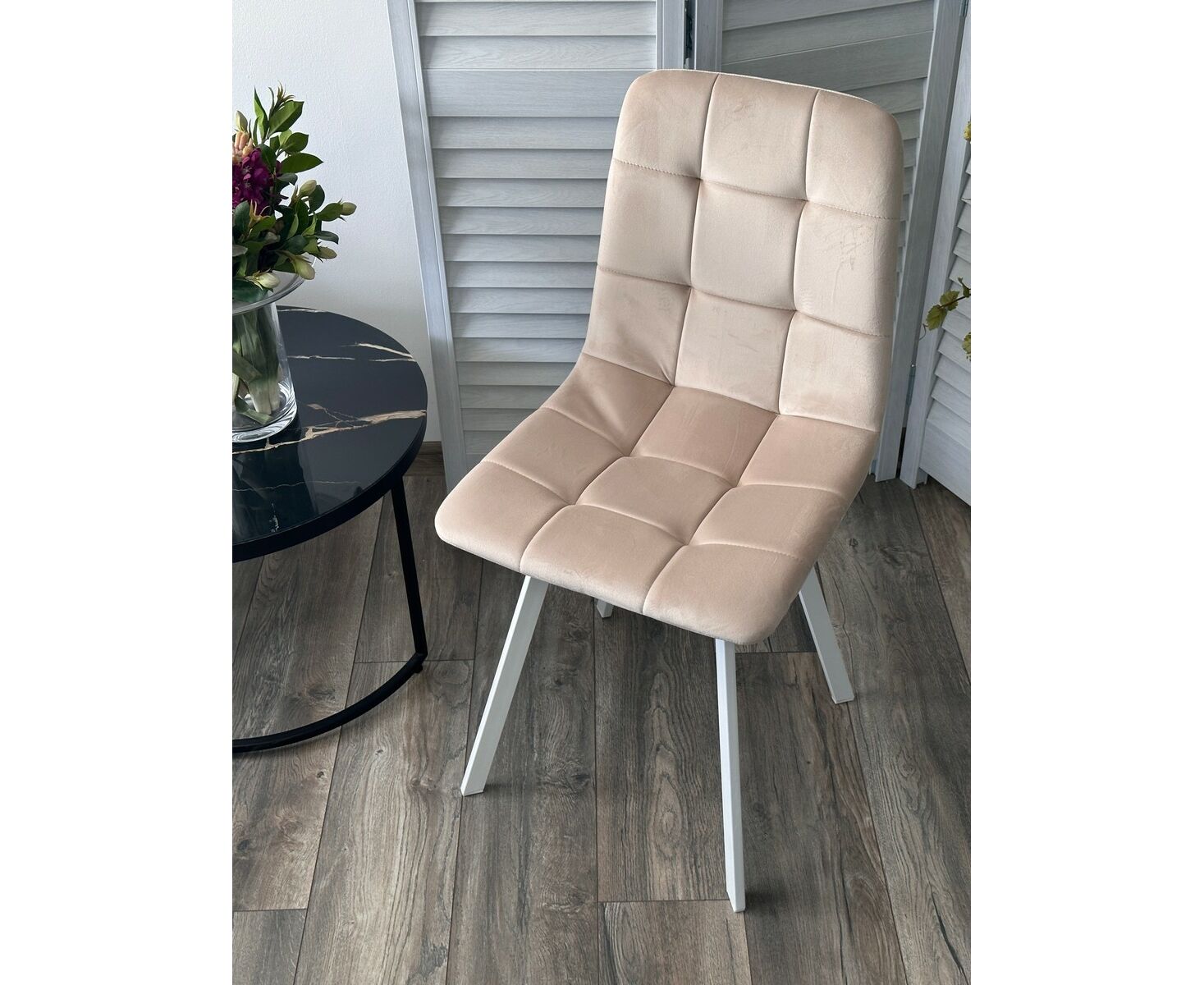 Стул РИЧИ, цвет H-06 Бежевый, велюр / белый каркас М-City