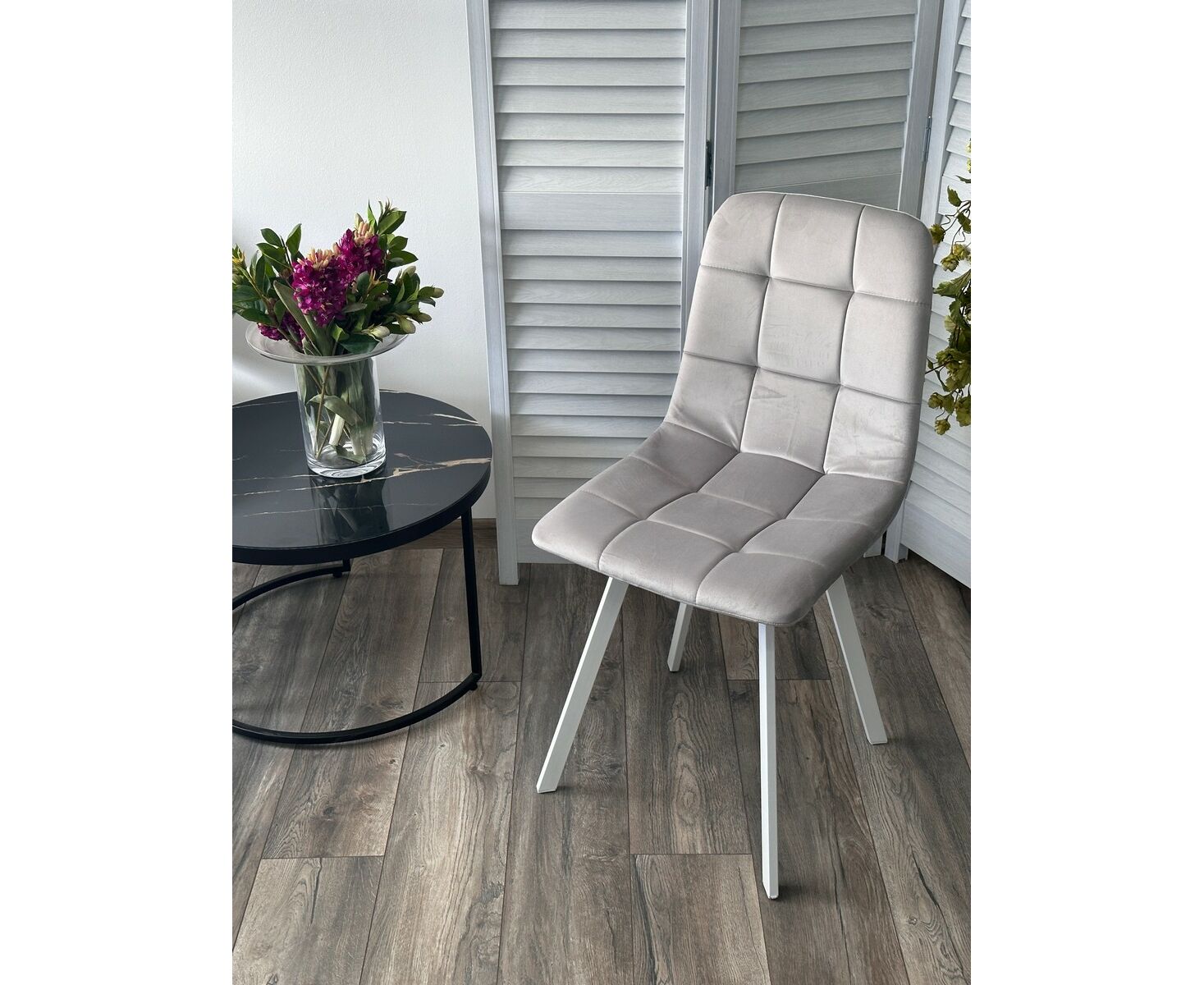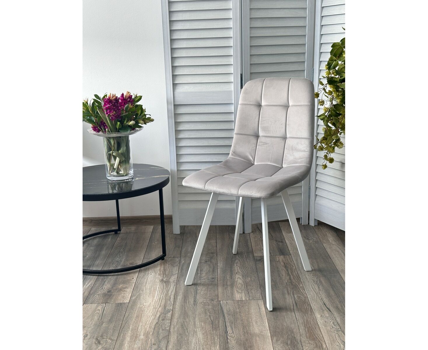 Стул РИЧИ, цвет H-09 Светло-серый, велюр / белый каркас М-City