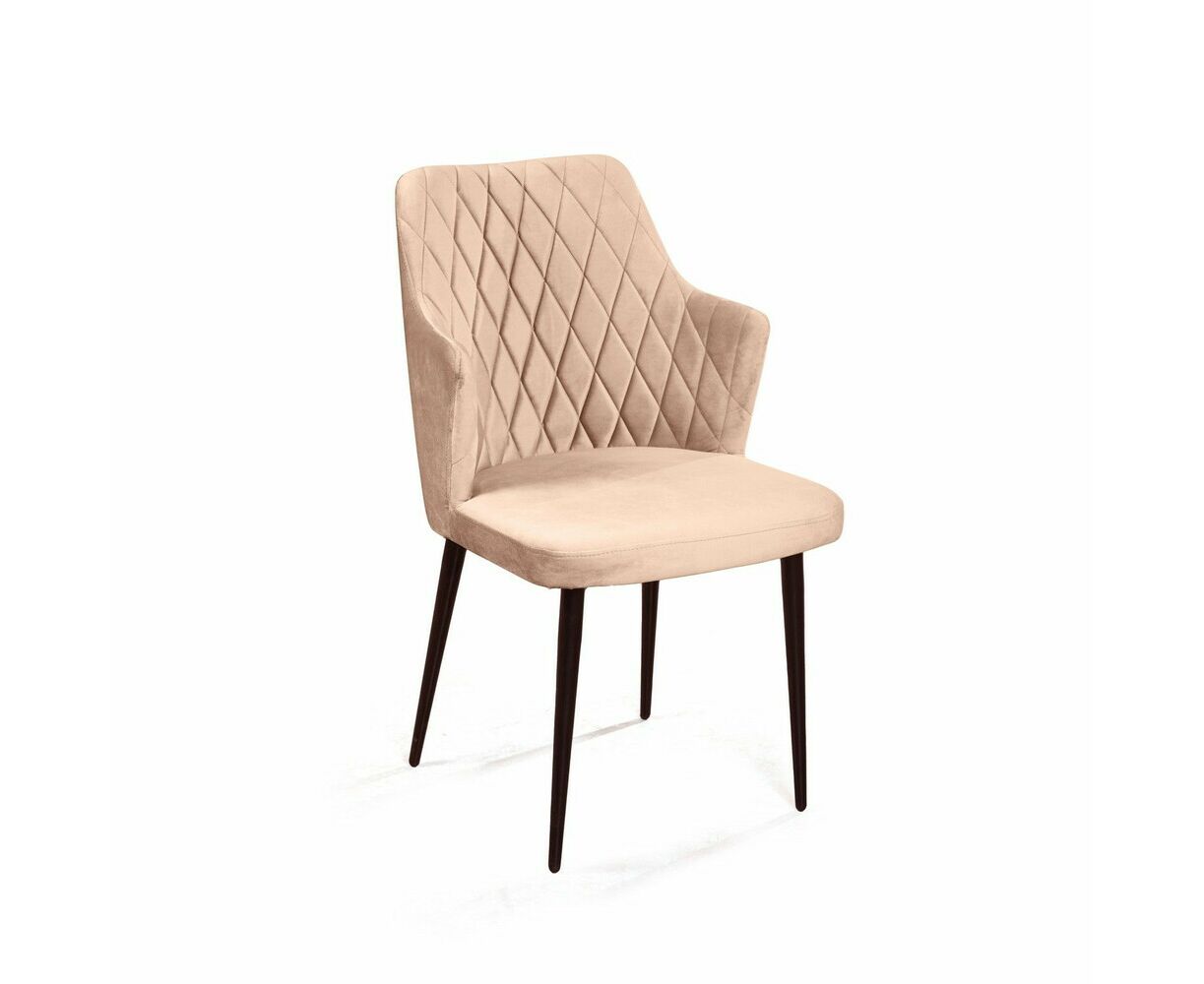 Стул с подлокотниками Hunt ромб, бархат бежевый 5 / чёрный конус