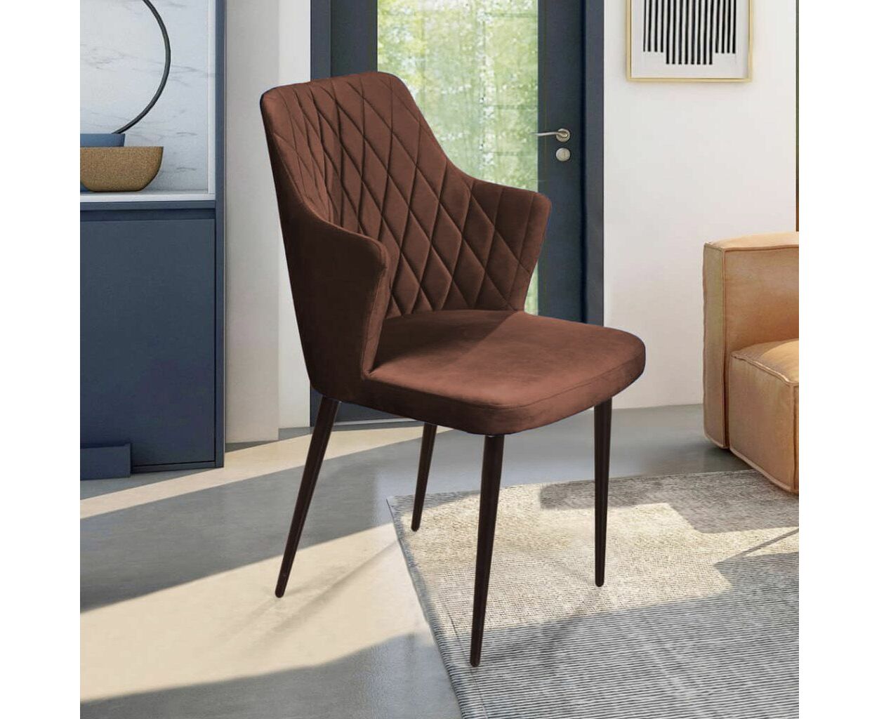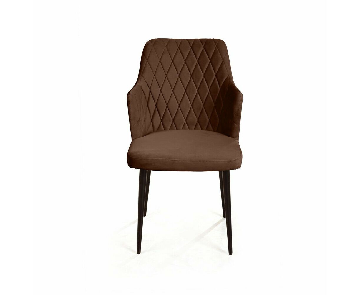 Стул с подлокотниками Hunt ромб, бархат коричневый 12 / чёрный конус