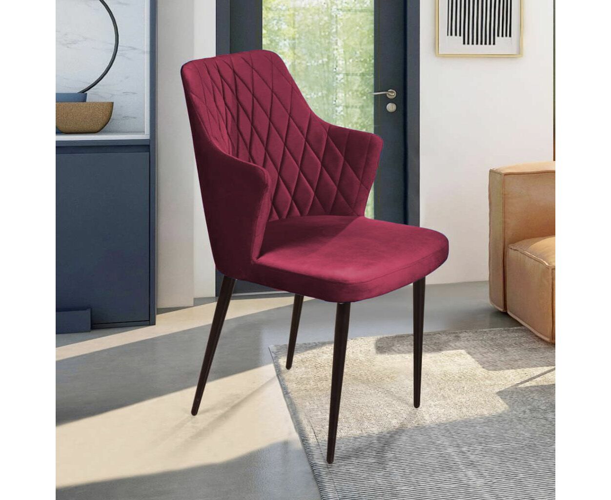Стул с подлокотниками Hunt ромб, бархат красный 16 / чёрный конус