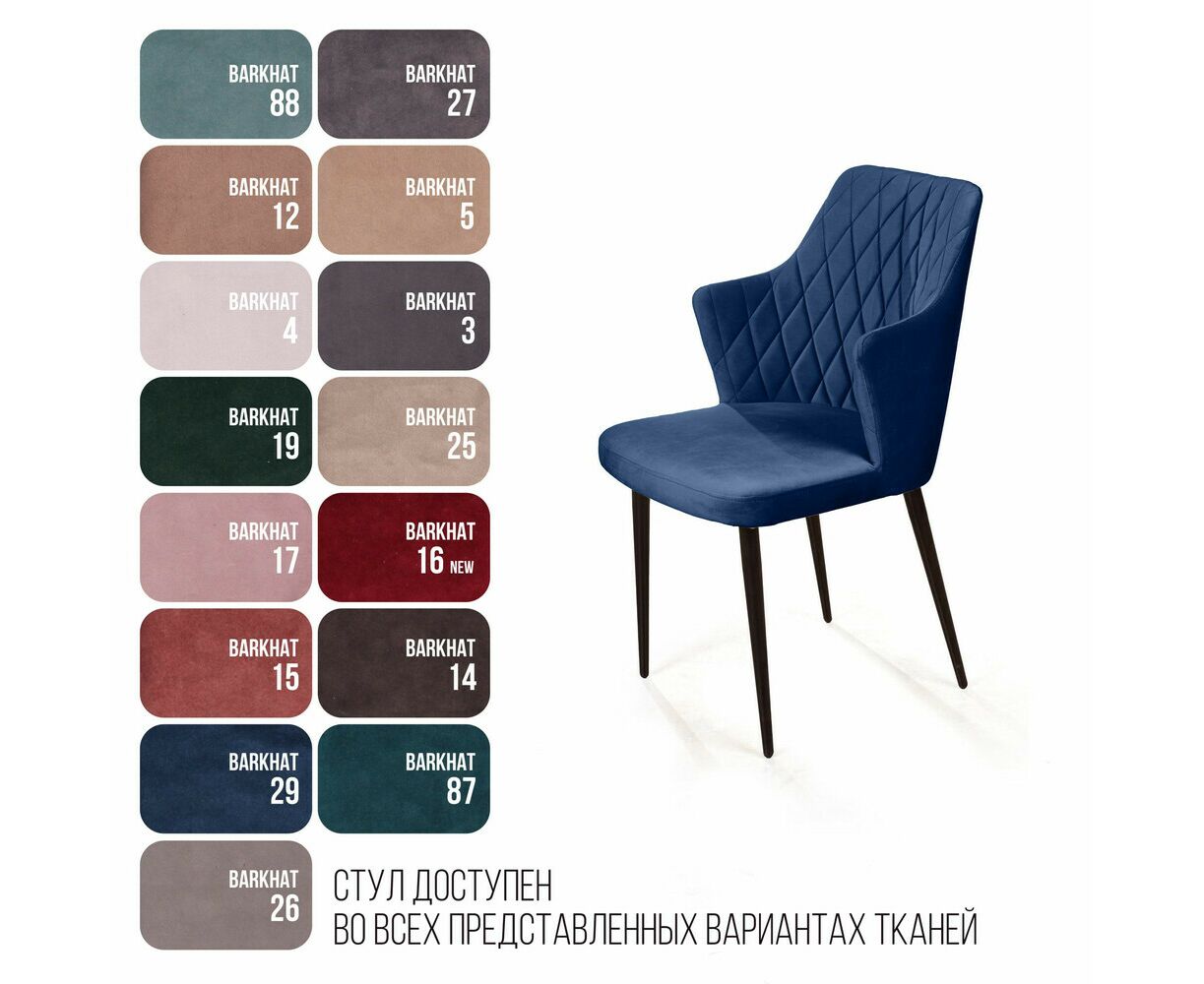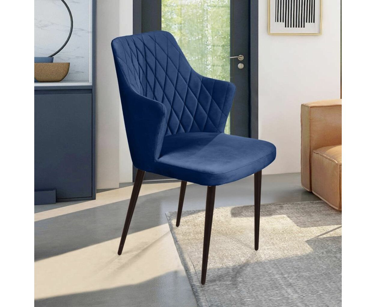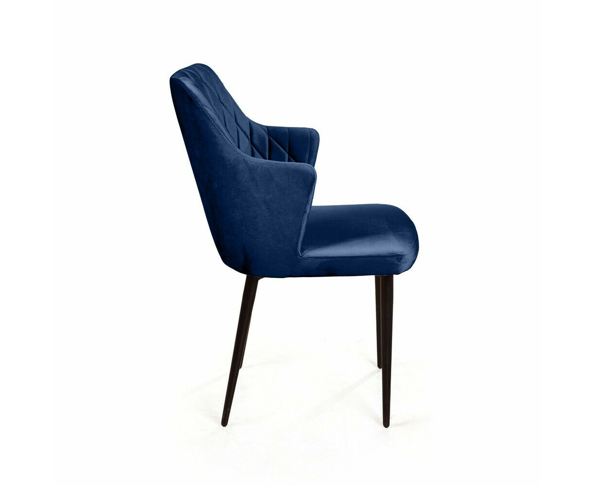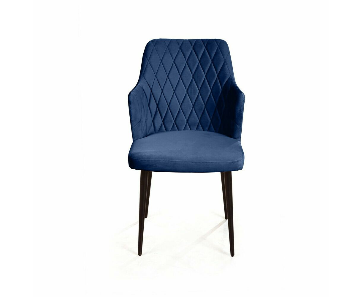 Стул с подлокотниками Hunt ромб, бархат синий 29 / чёрный конус