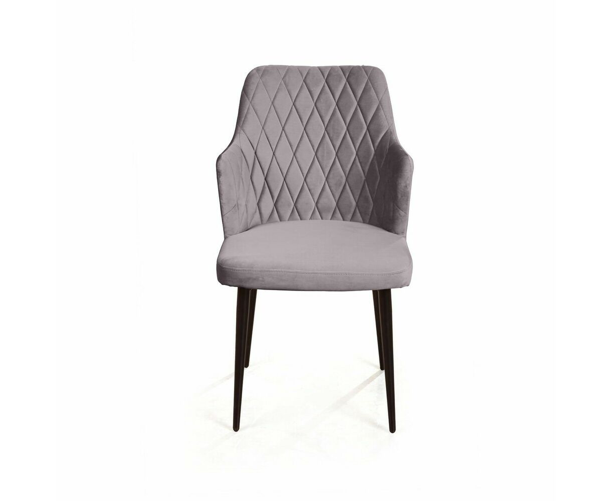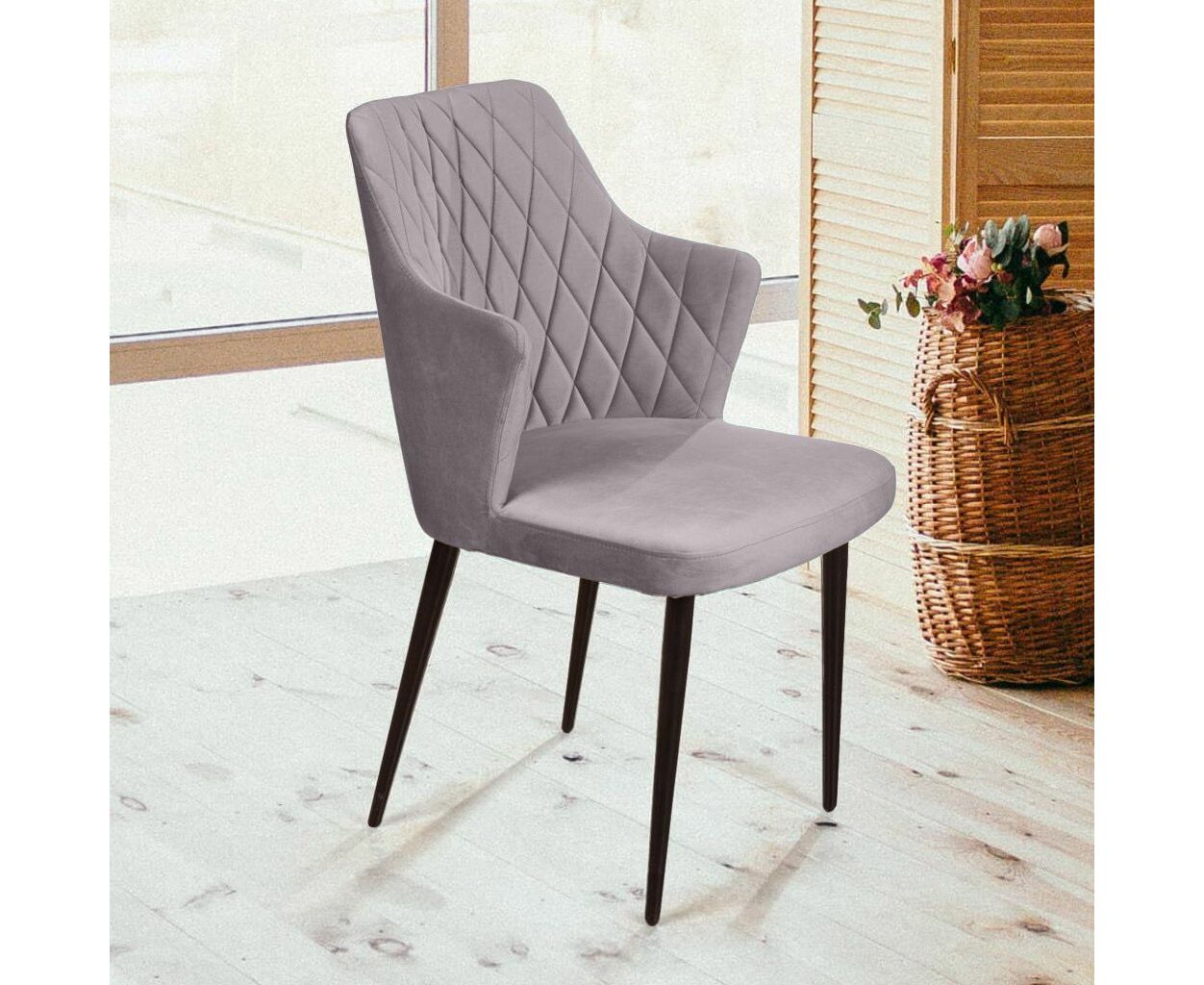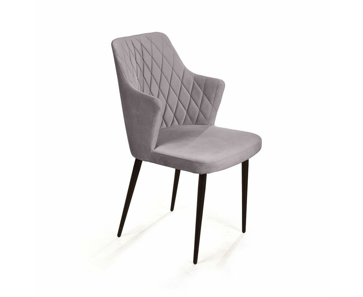 Стул с подлокотниками Hunt ромб, бархат светло-серый 26 / чёрный конус