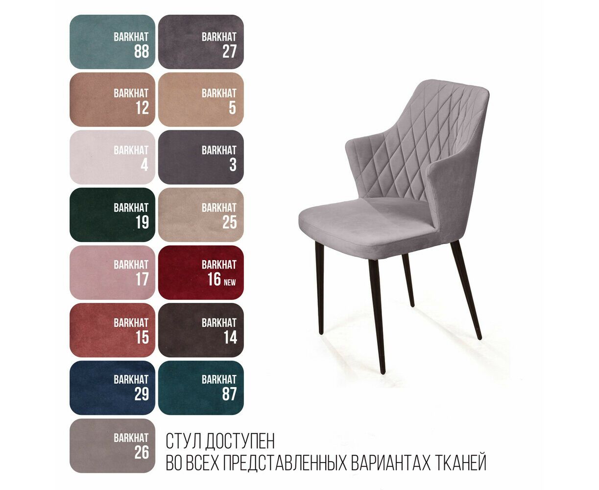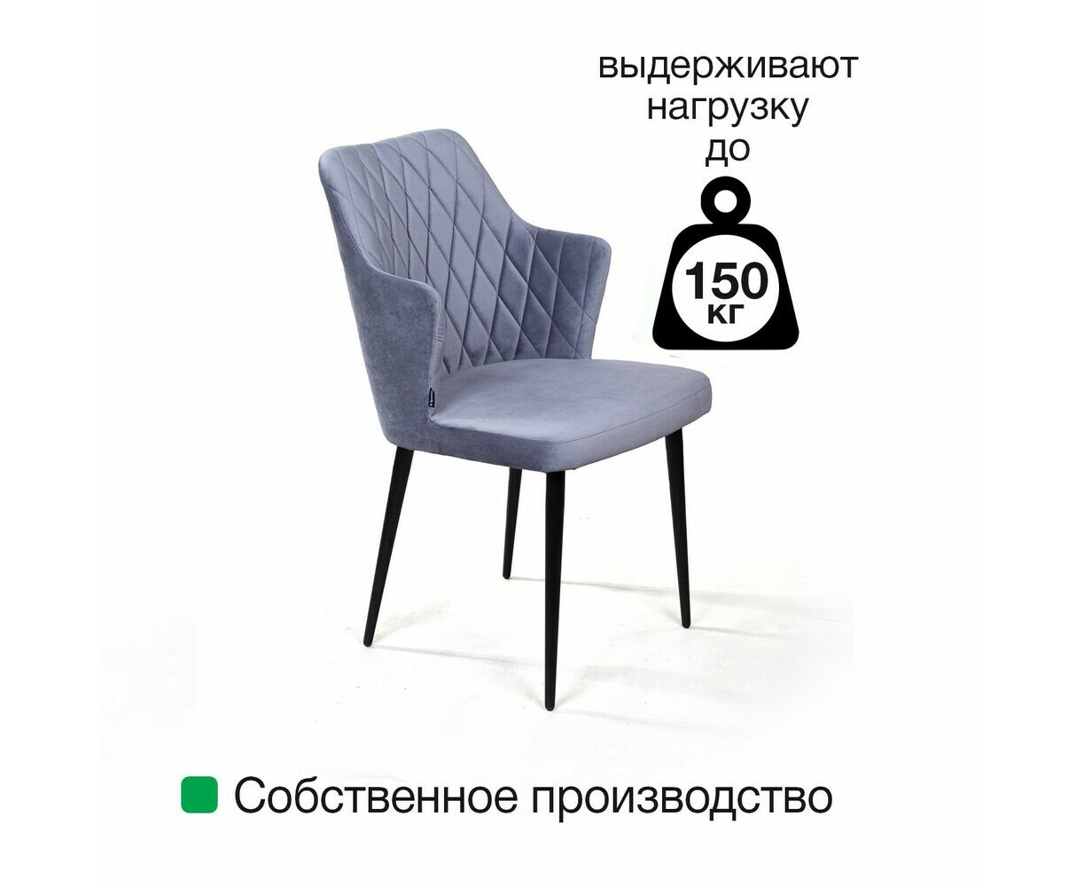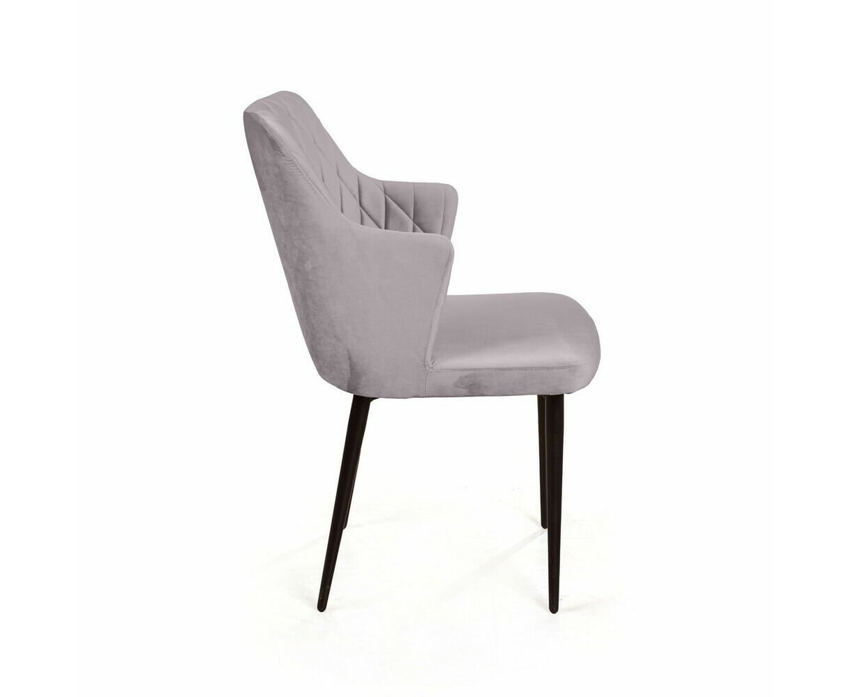 Стул с подлокотниками Hunt ромб, бархат светло-серый 26 / чёрный конус