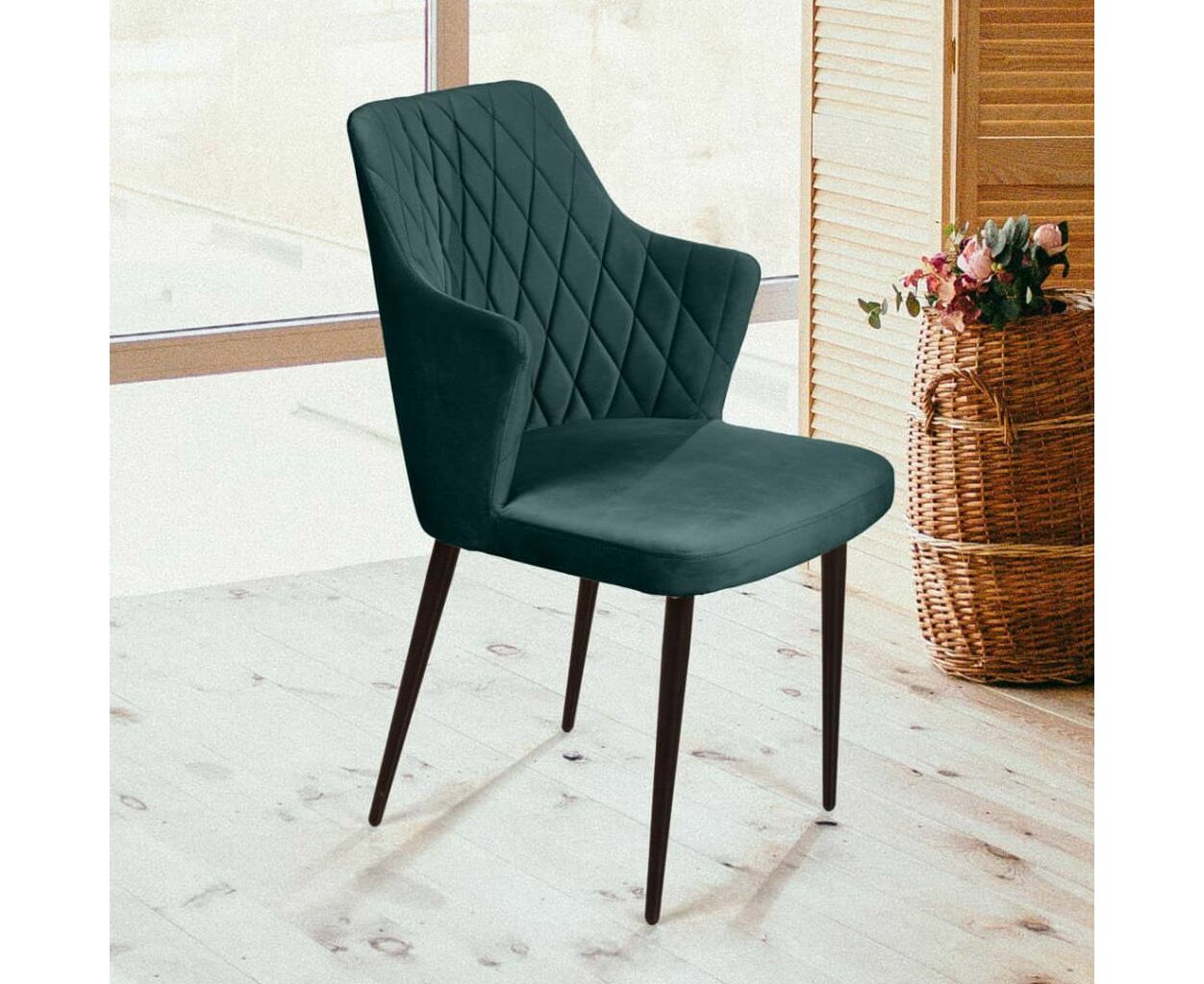 Стул с подлокотниками Hunt ромб, бархат зелёный 19 / чёрный конус