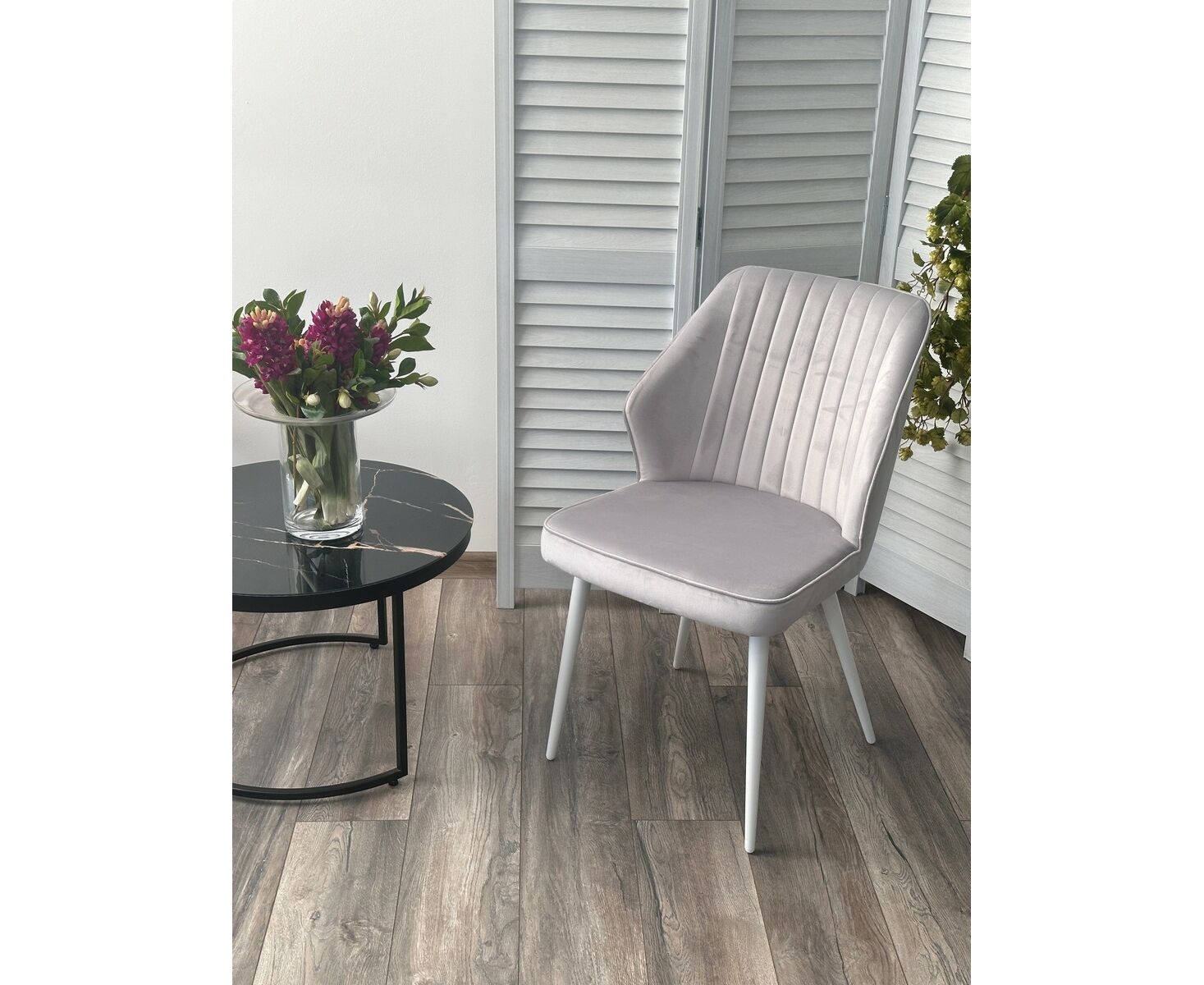 Стул SEATTLE-V СВЕТЛО-СЕРЫЙ BM-4, велюр / белый каркас М-City