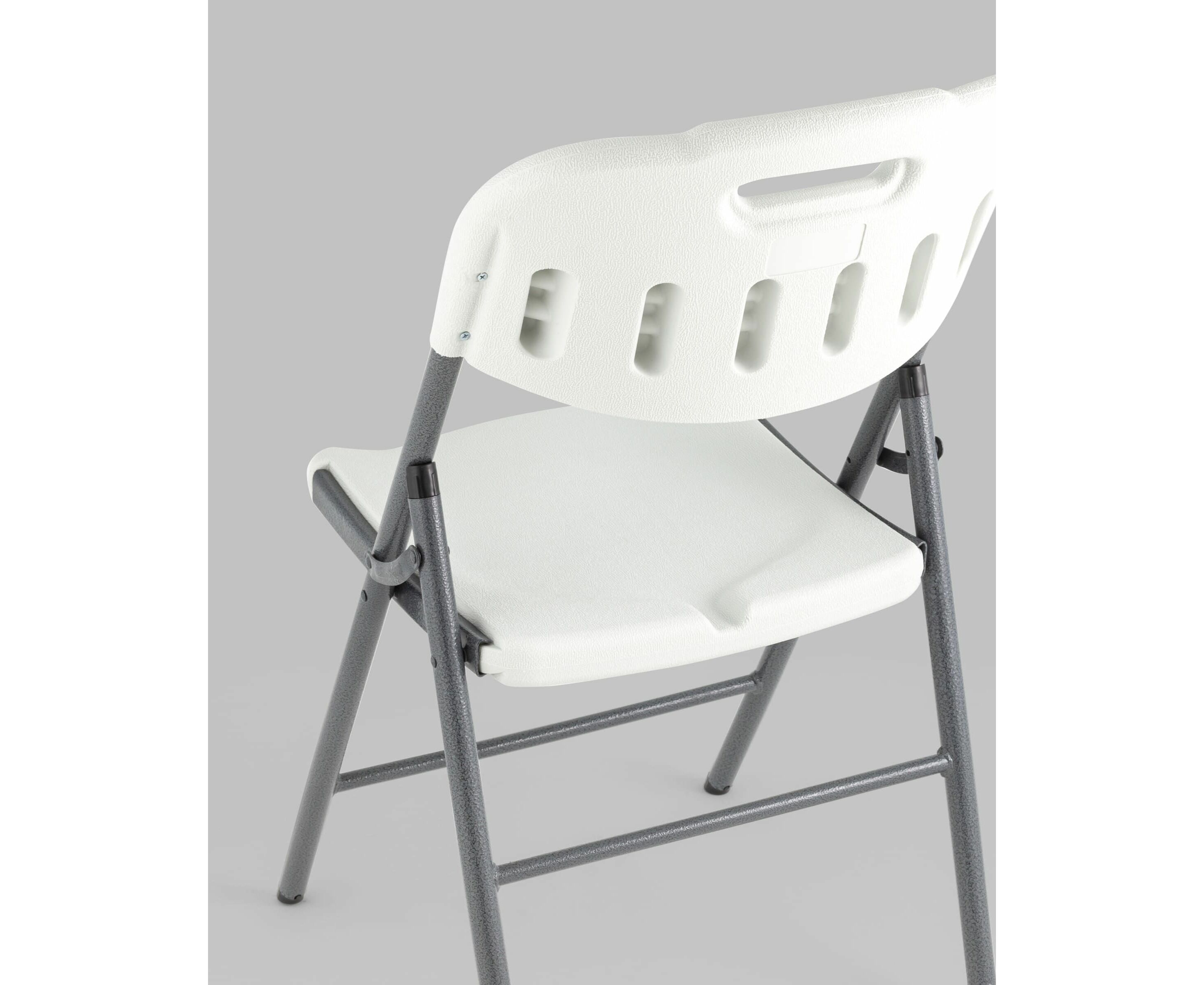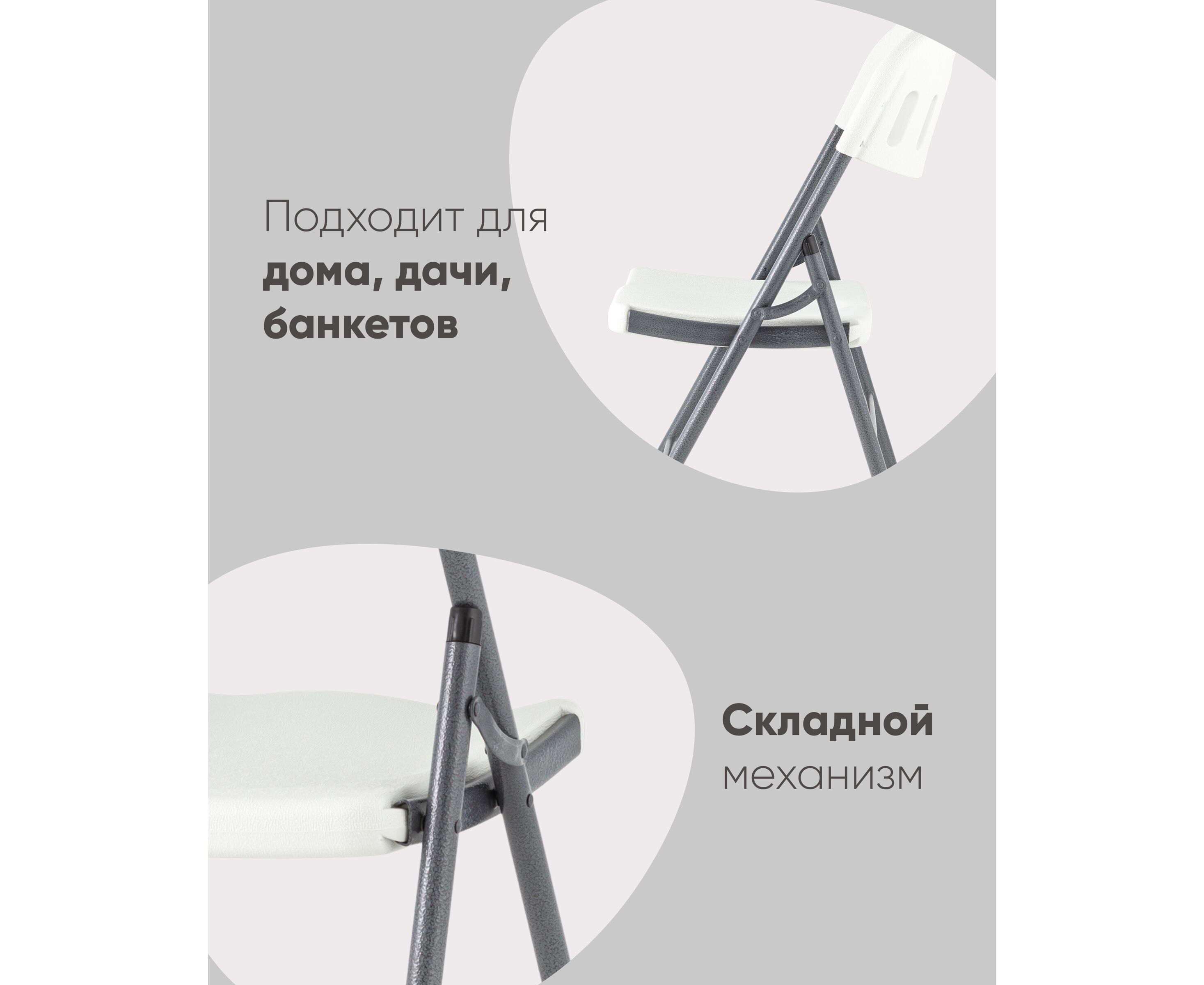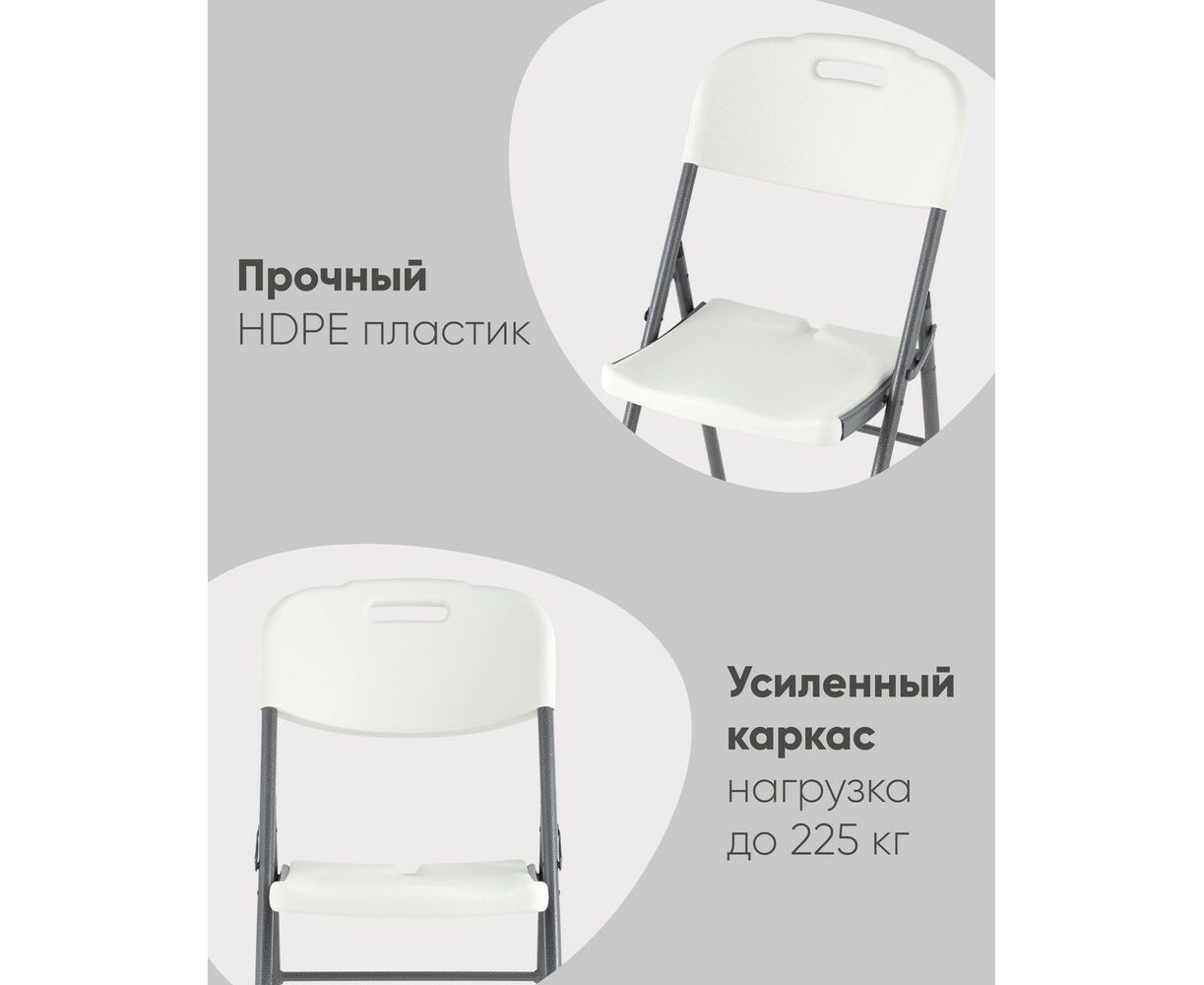 Складной пластиковый стул отличается удобной и компактной конструкцией, а также грамотно подобранными материалами. Для каркаса используется стальная труба особой прочности, а сиденье и спинка выполнены из 100% не переработанного полиэтилена HDPE (полиэтилен высокой плотности). Считается одним из более безопасных видов пластика. HDPE пластик выдерживает высокие нагрузки, не трескается при ударной нагрузке, эластичен в диапазоне температур от –70 до +100 °С.