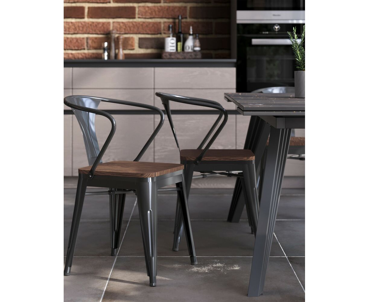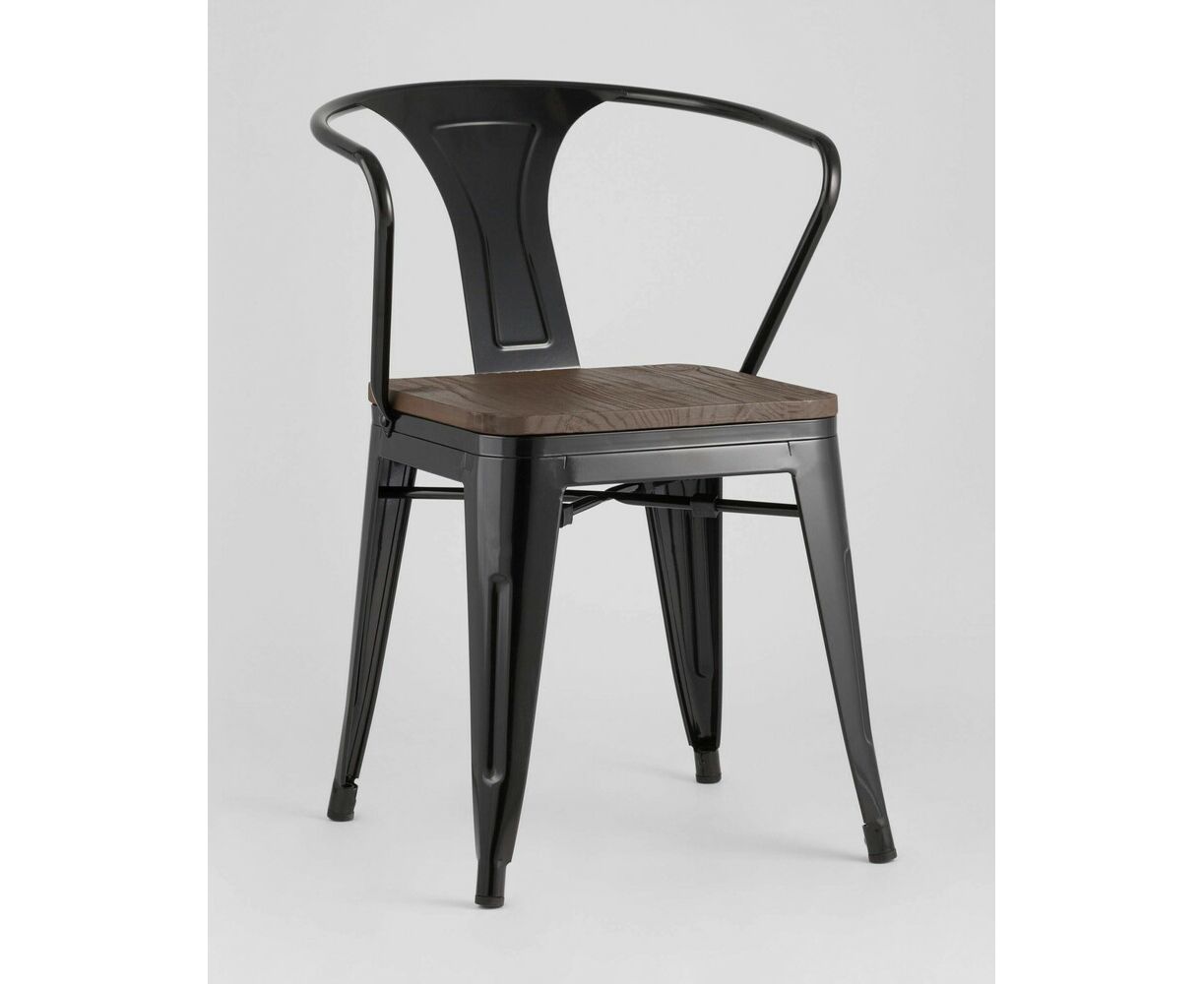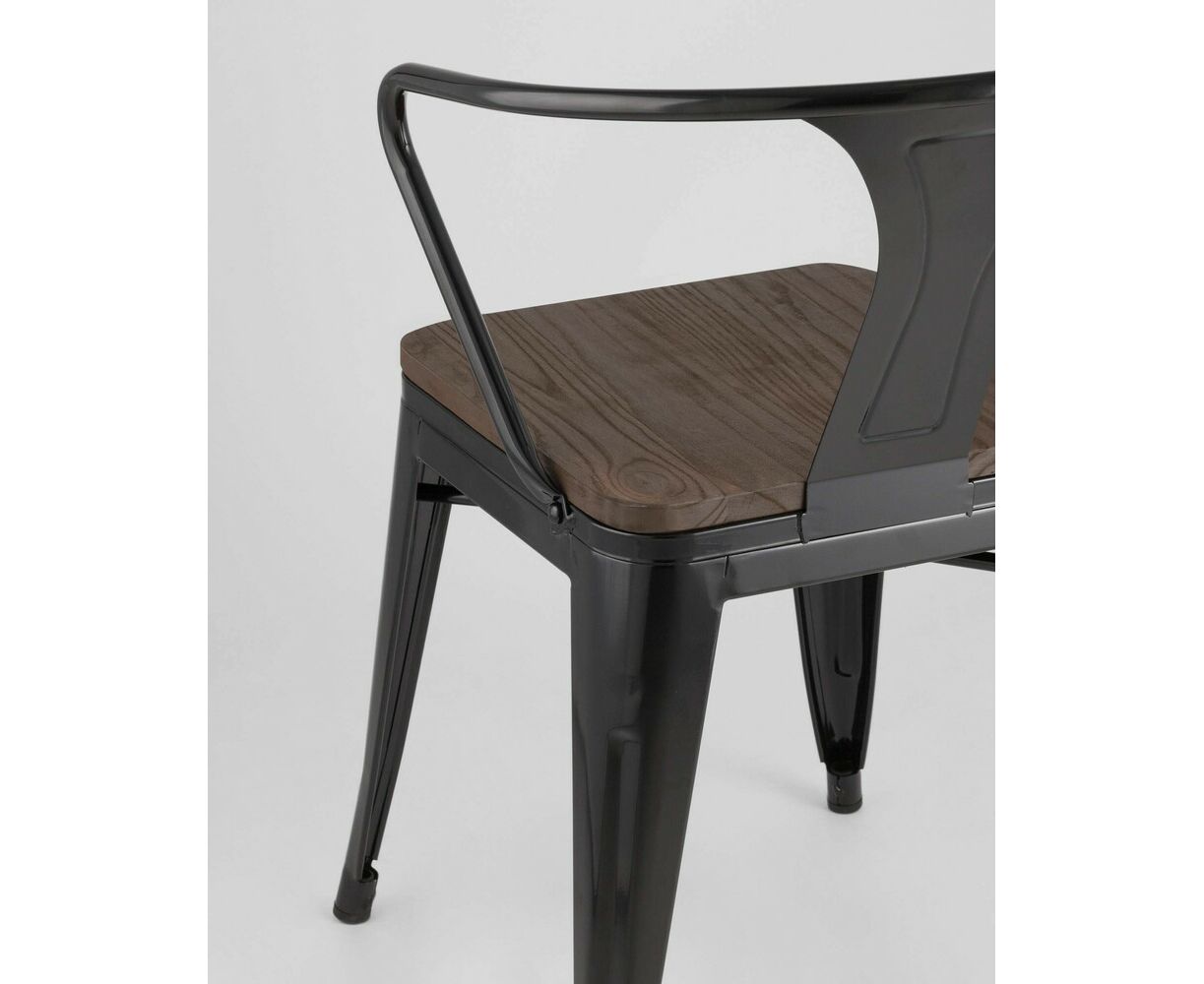 Стул TOLIX ARM WOOD с подлокотниками черный