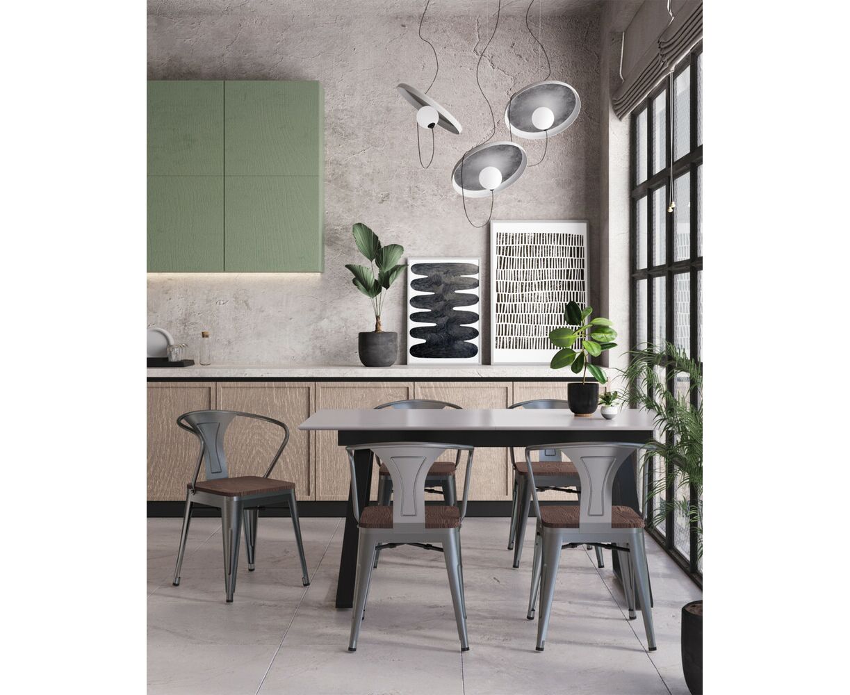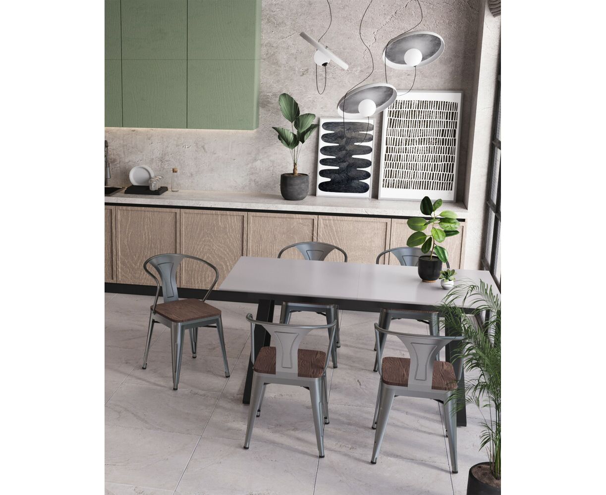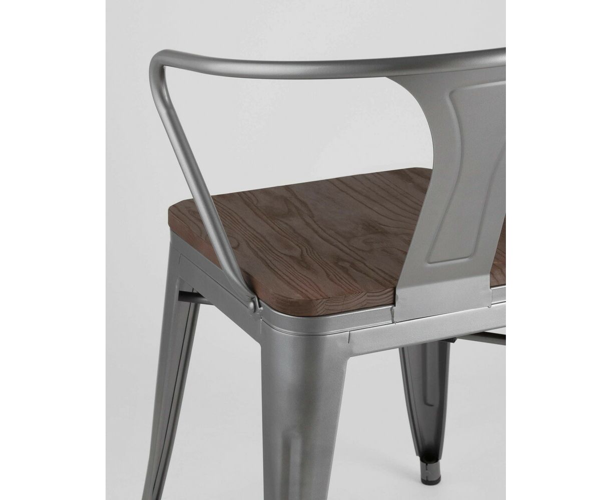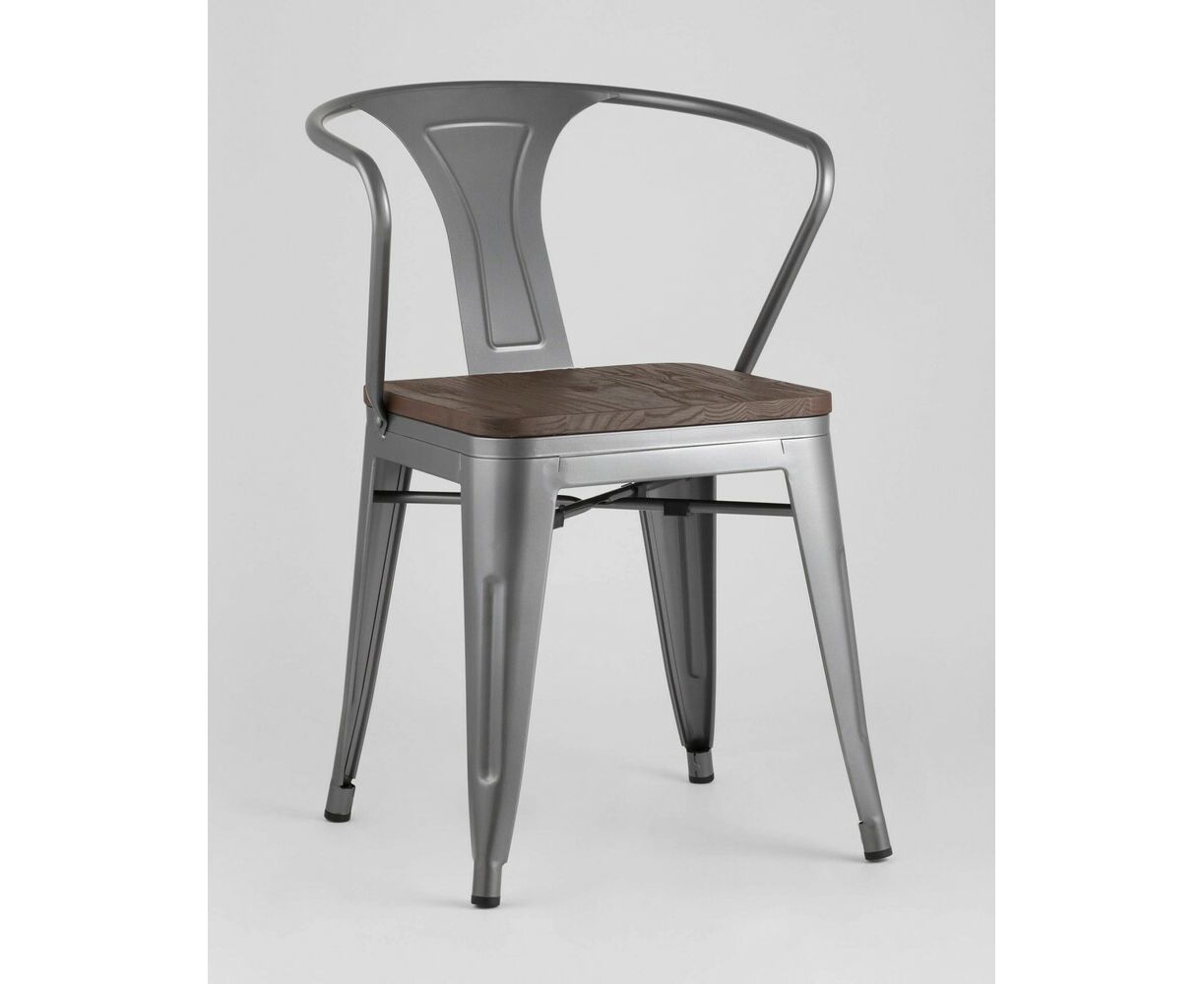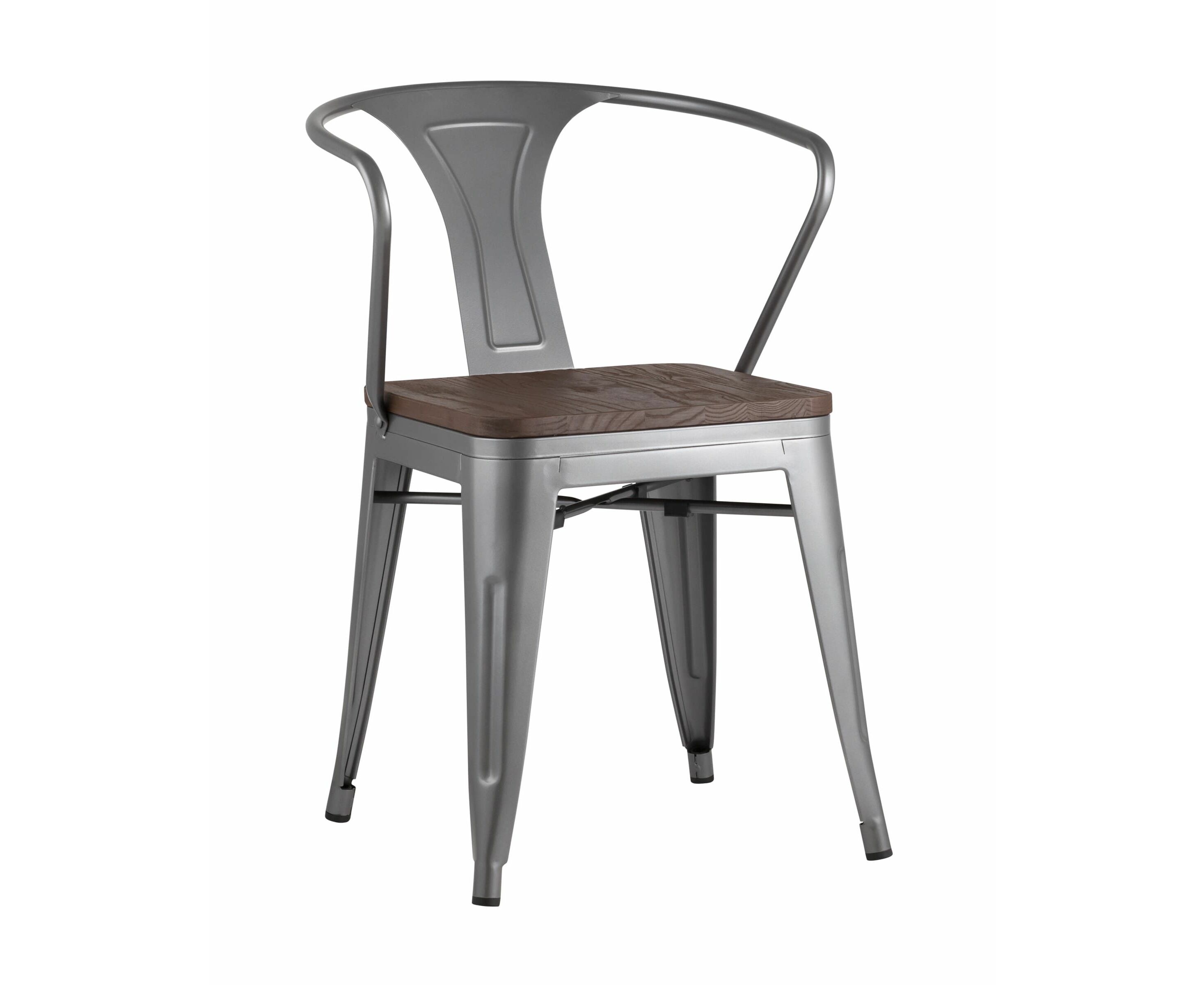 Стул TOLIX ARM WOOD с подлокотниками серебристый