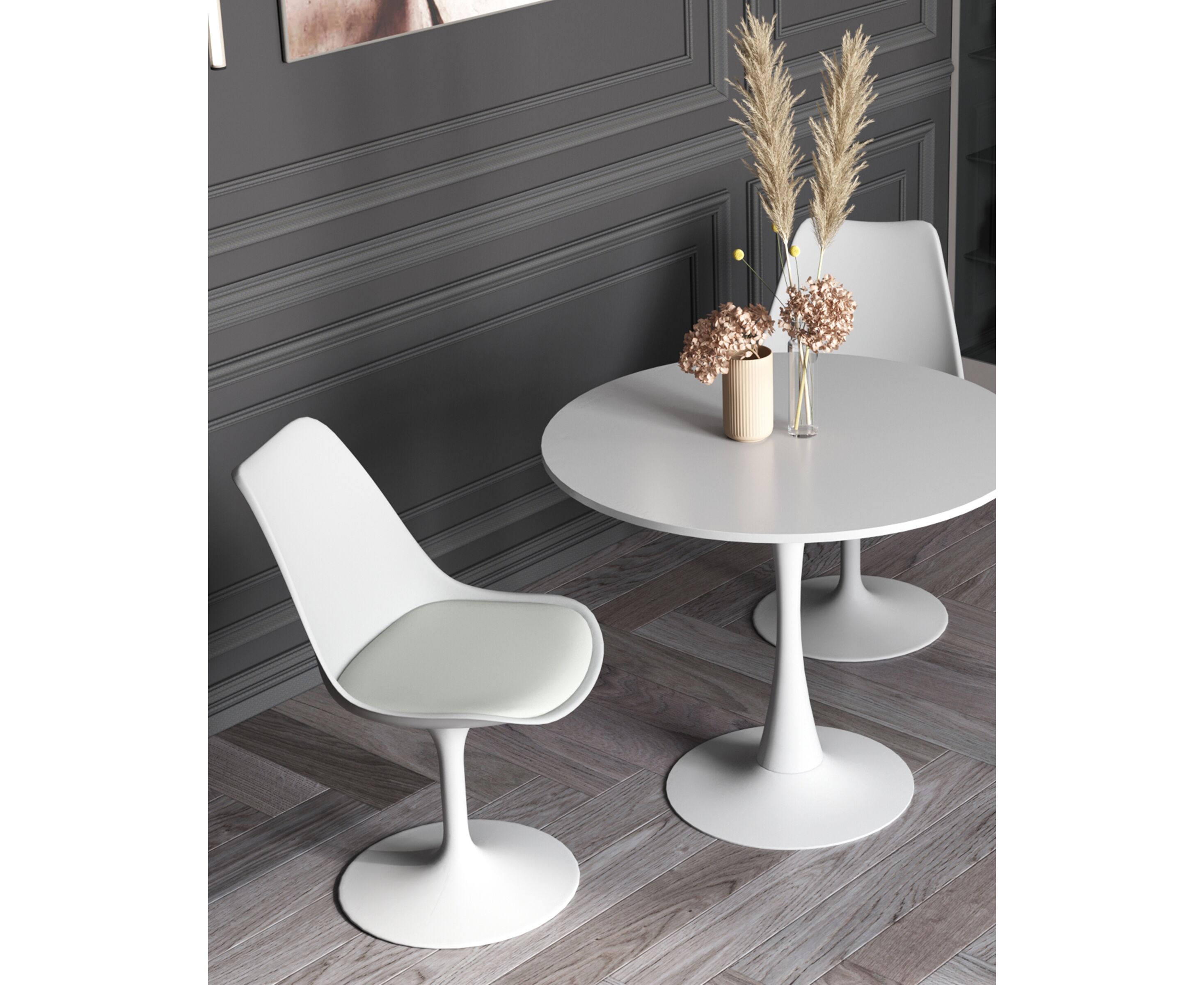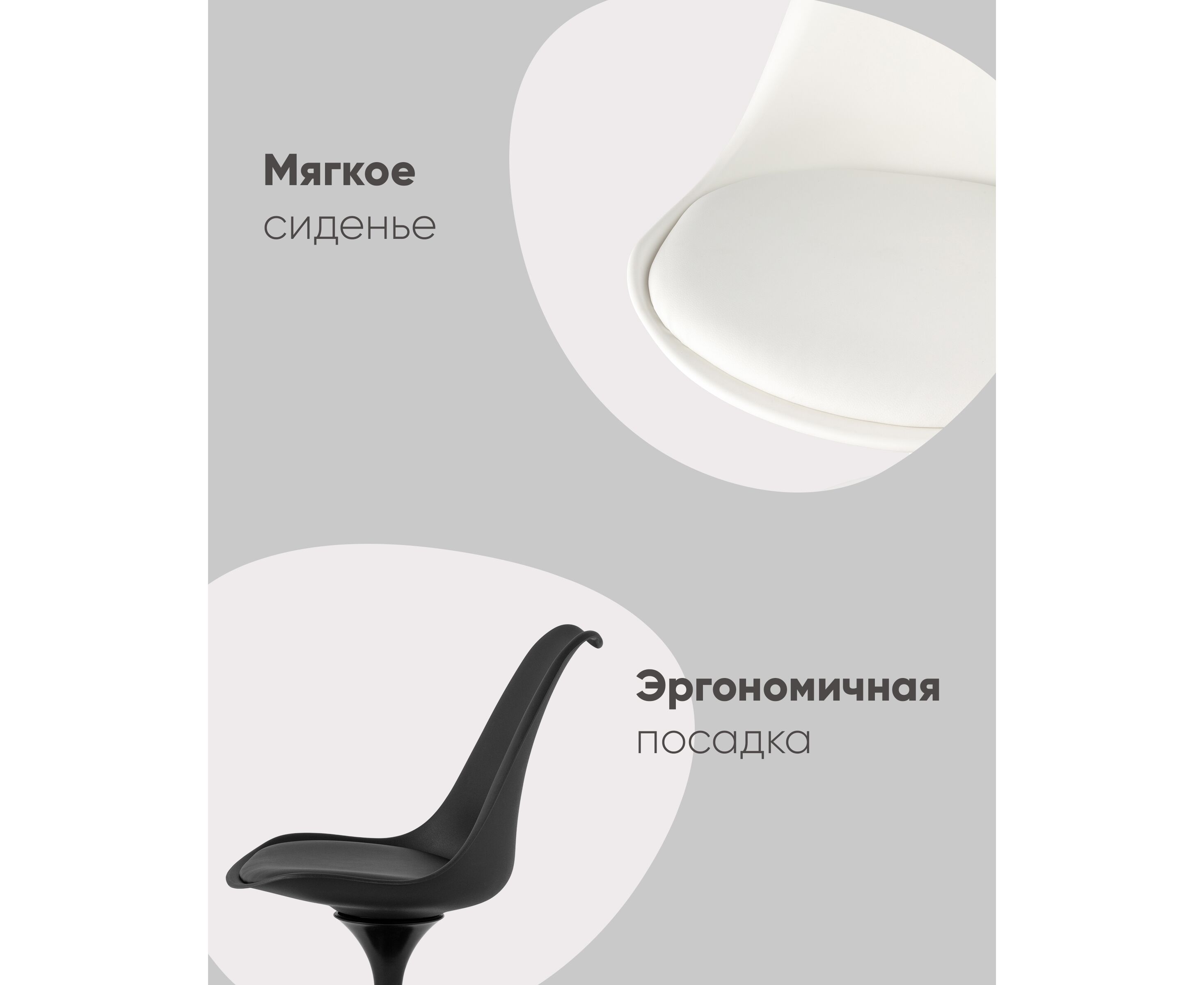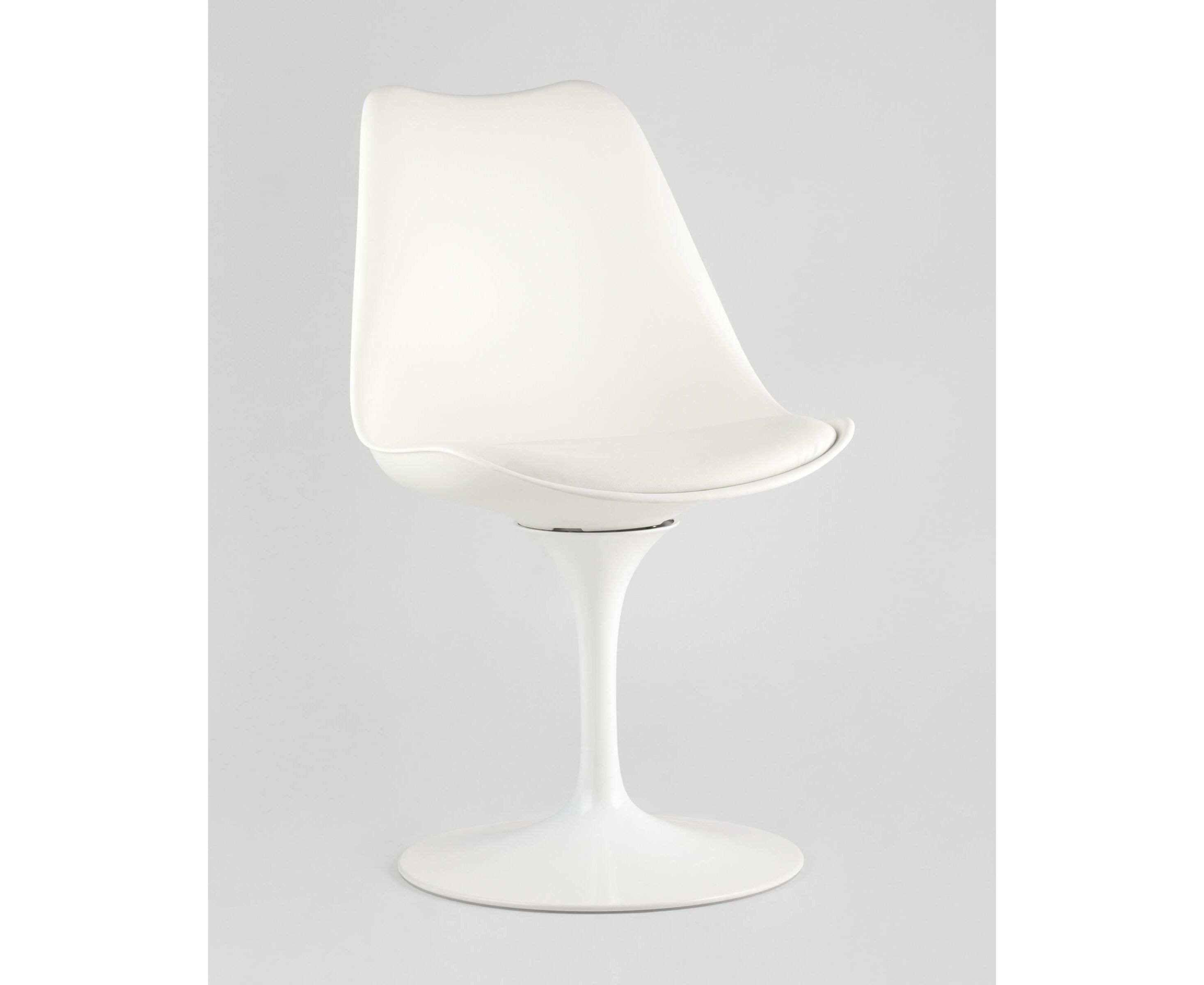 Стул Tulip белый, ножка металлическая, сиденье и спинка из пластика, сидушка мягкая из экокожи