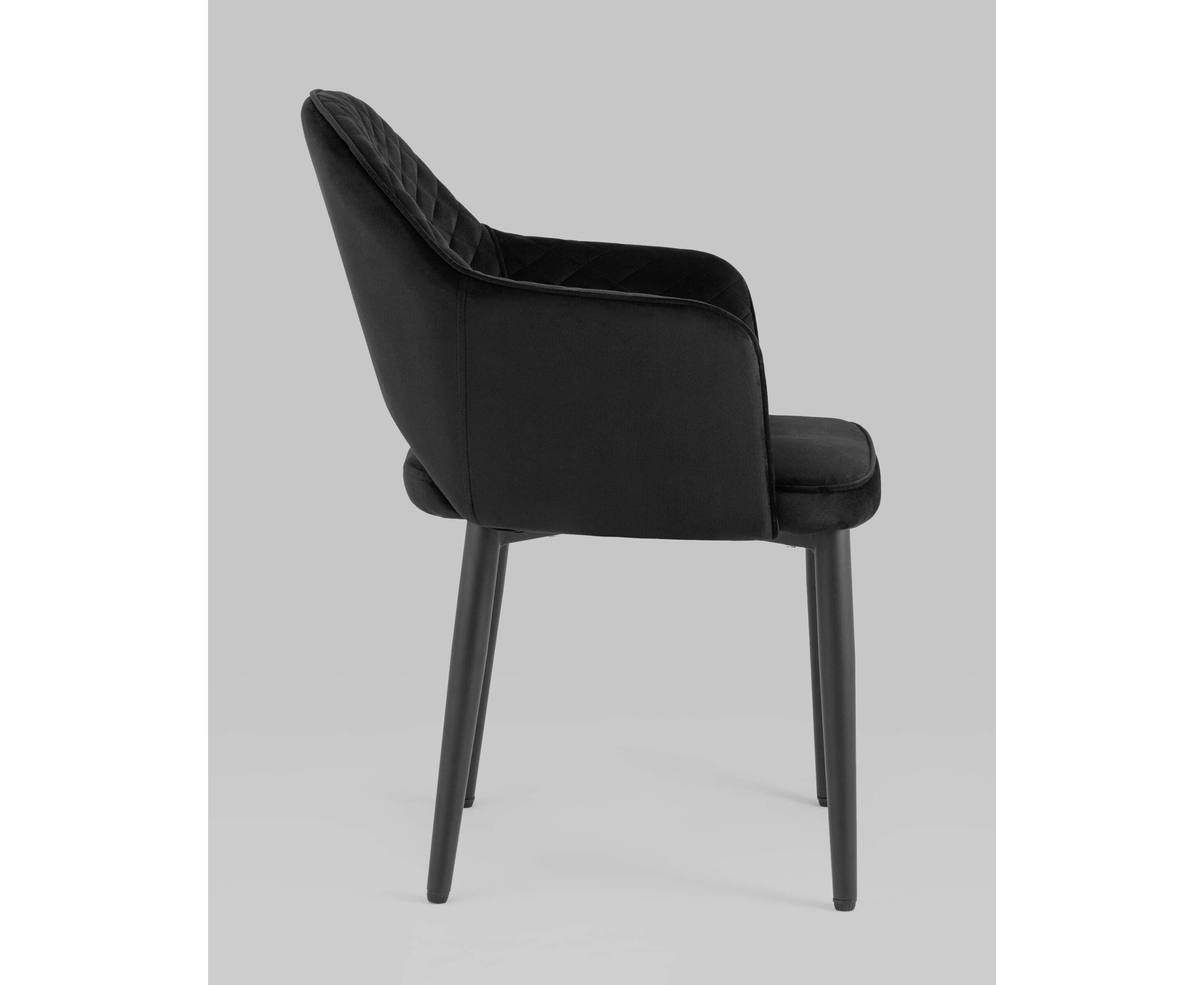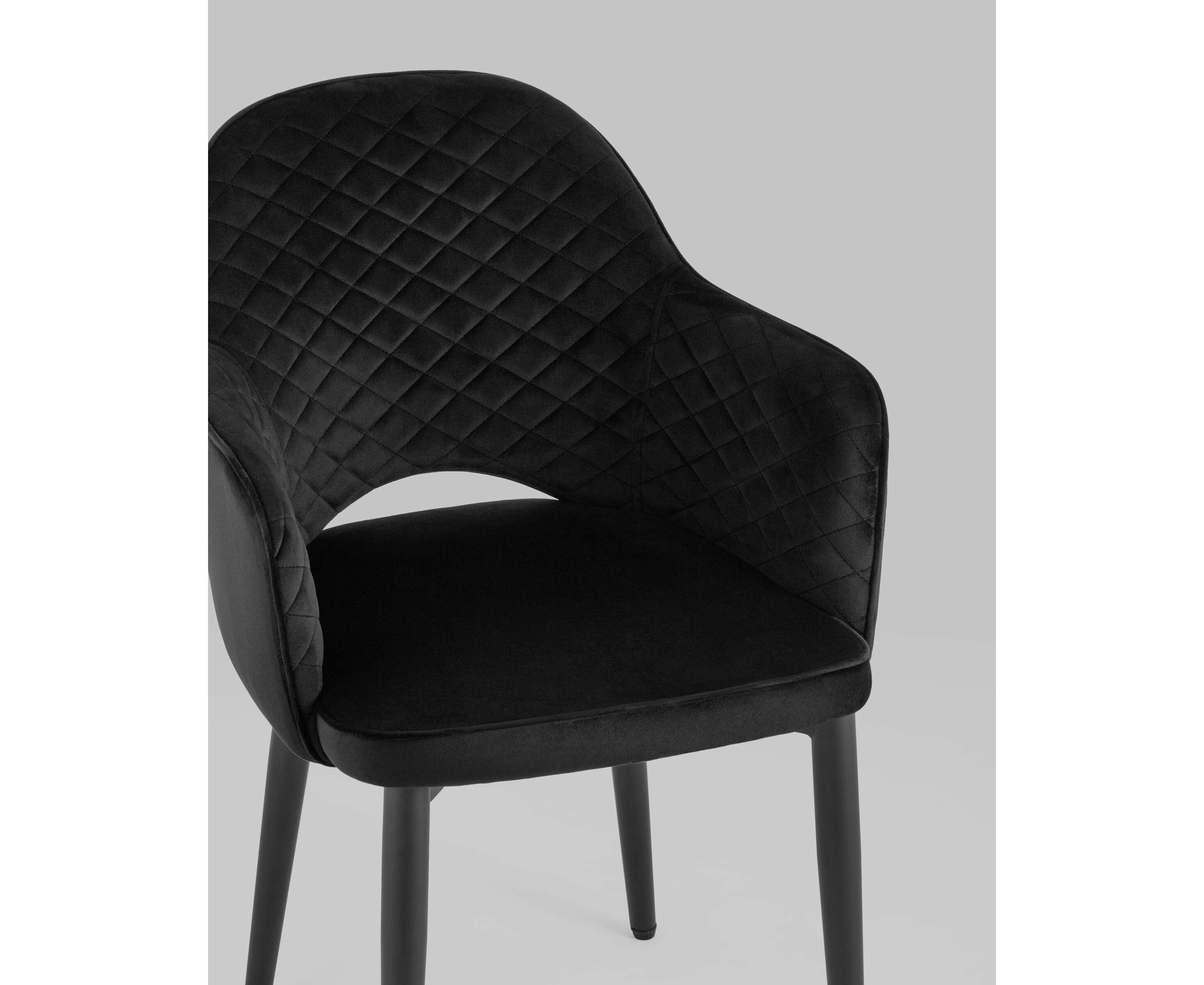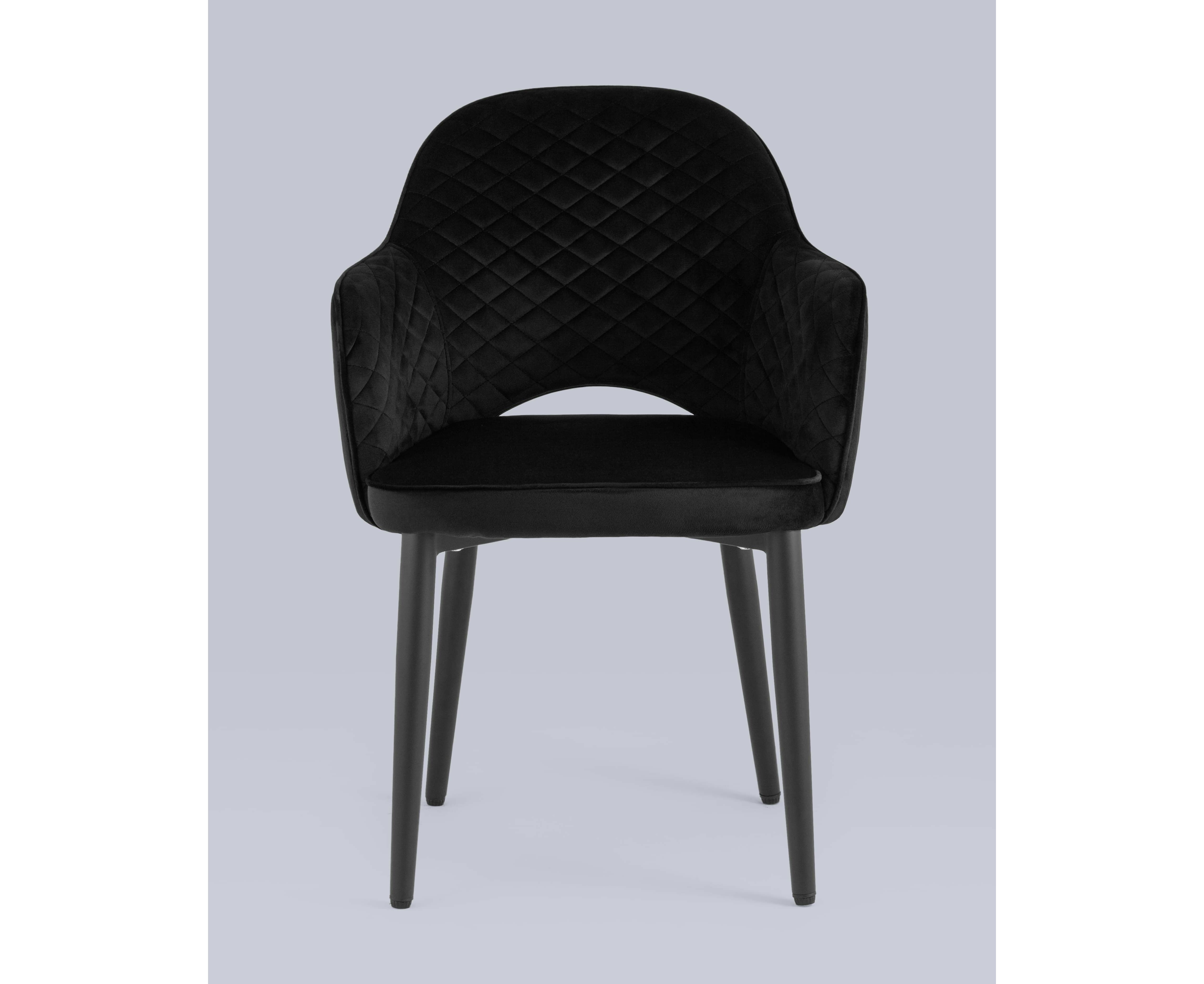 Мягкий стул с округлой спинкой анатомической формы и удобными подлокотниками подарит комфорт и уют. В качестве обивки используется велюр - прочный износостойкий материал. Внутренняя сторона спинки и подлокотников украшена декором в виде ромбов. Высота подлокотников от пола - 64,5 см.