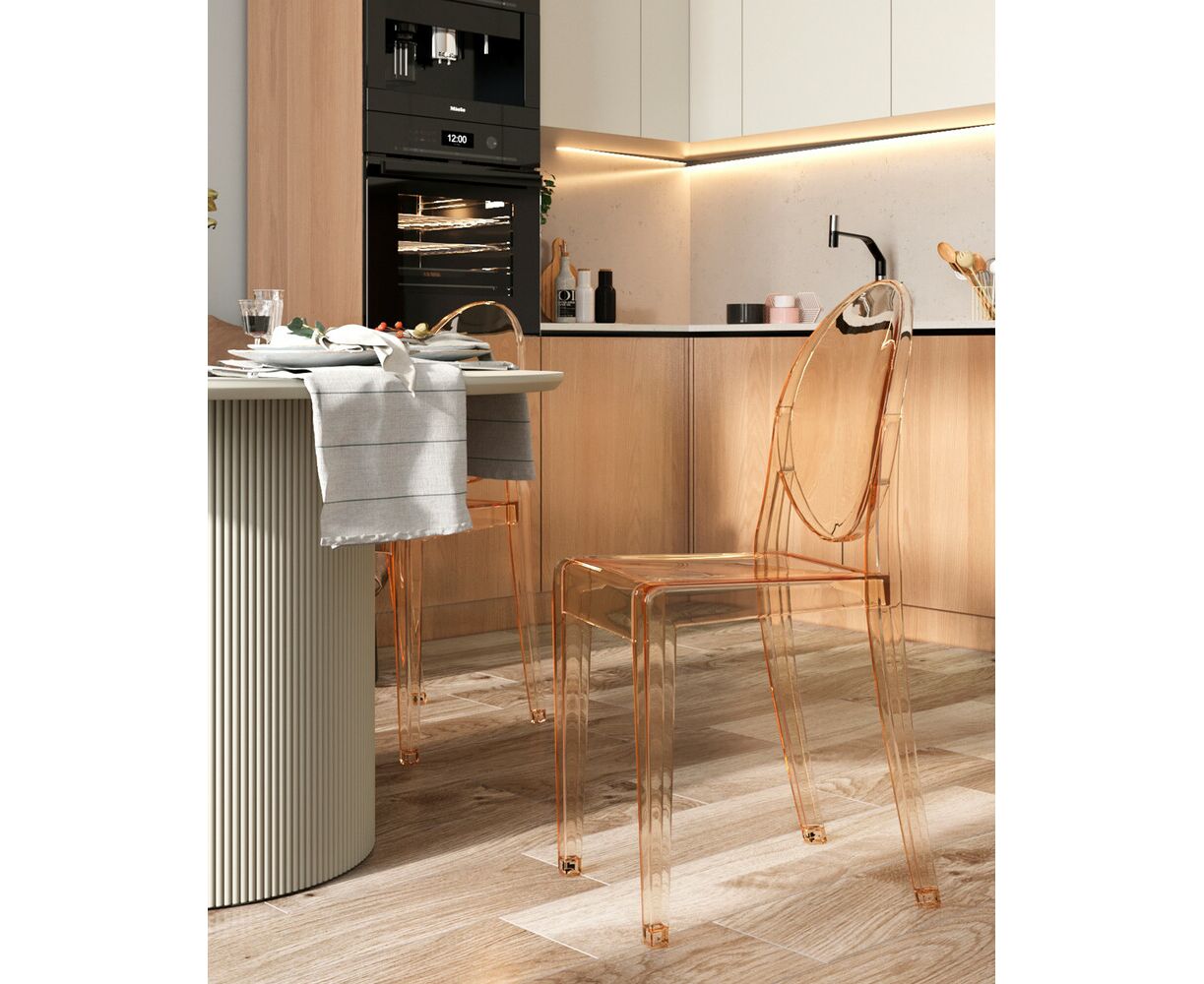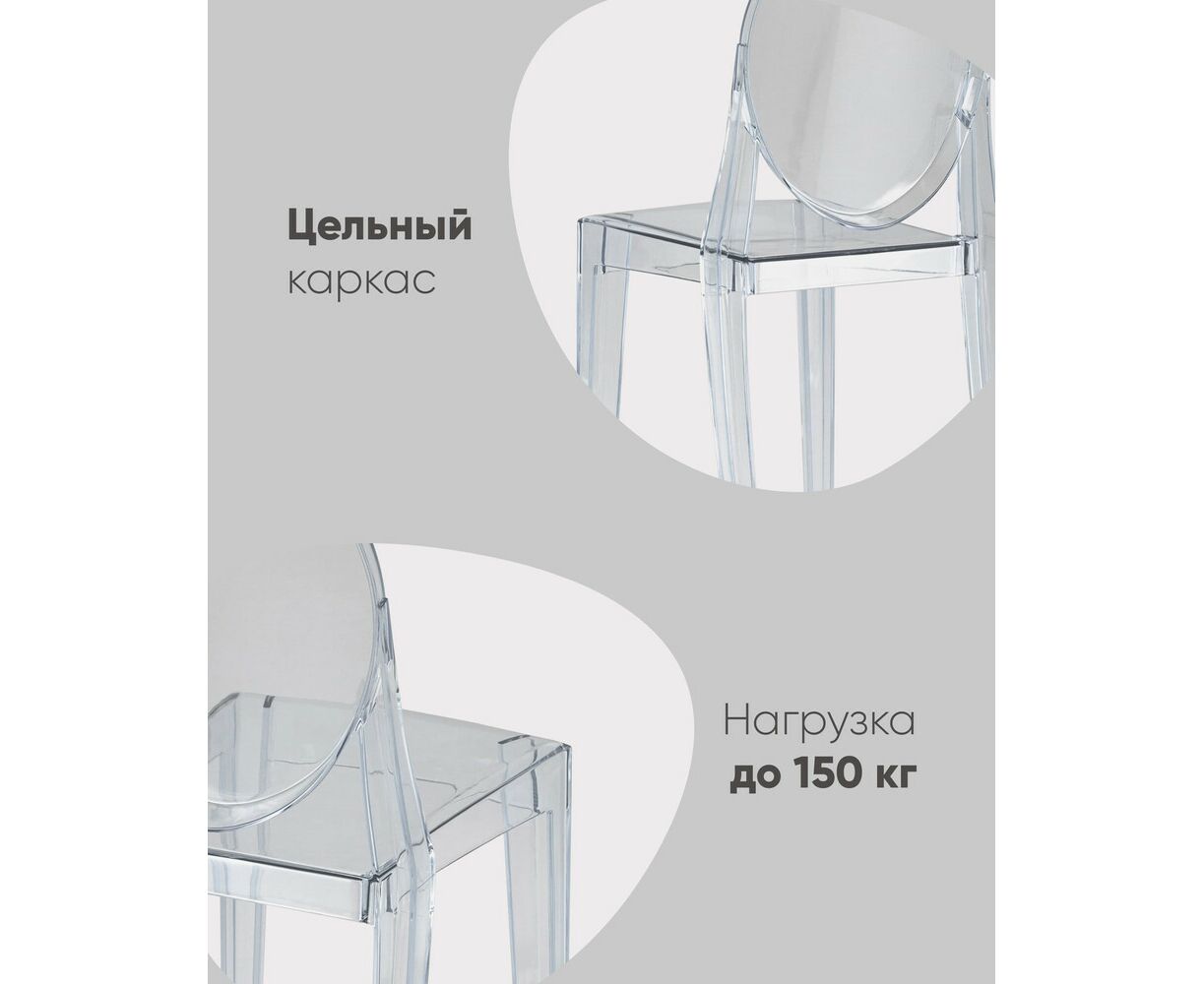 Стул Victoria Ghost переживет не одно десятилетие, сохранив свои качества и красоту. Высокая спинка и просторное сиденье обеспечивают комфортную посадку. Современное дизайнерское решение в виде отсутствия цвета позволяет вписать стул в любой интерьер, не перегружая пространство. Несмотря на хрупкий внешний вид, стул Victoria выдерживает нагрузку в 150 кг.
