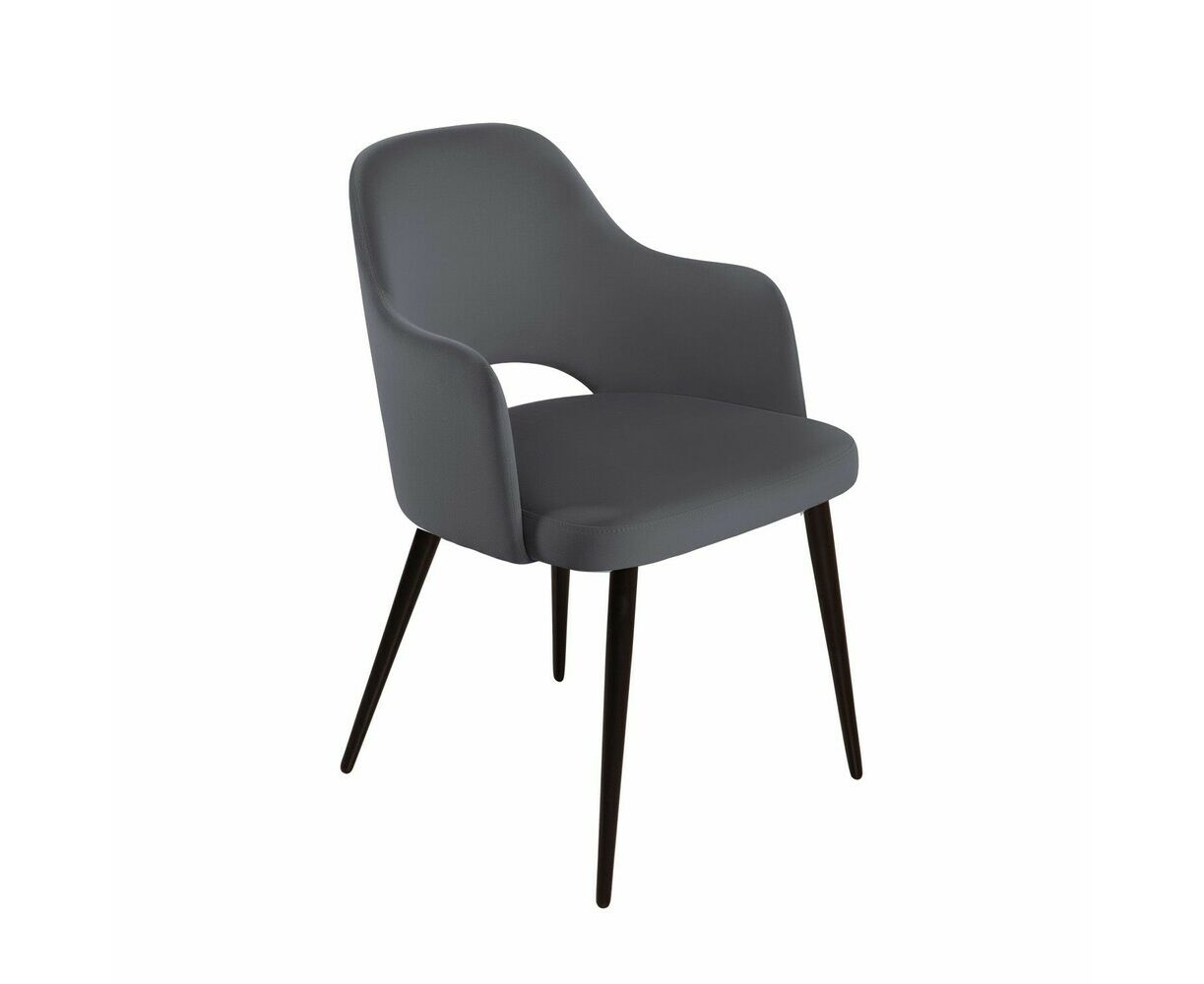 Стул William с подлокотниками, бархат серый 27/ черный конус