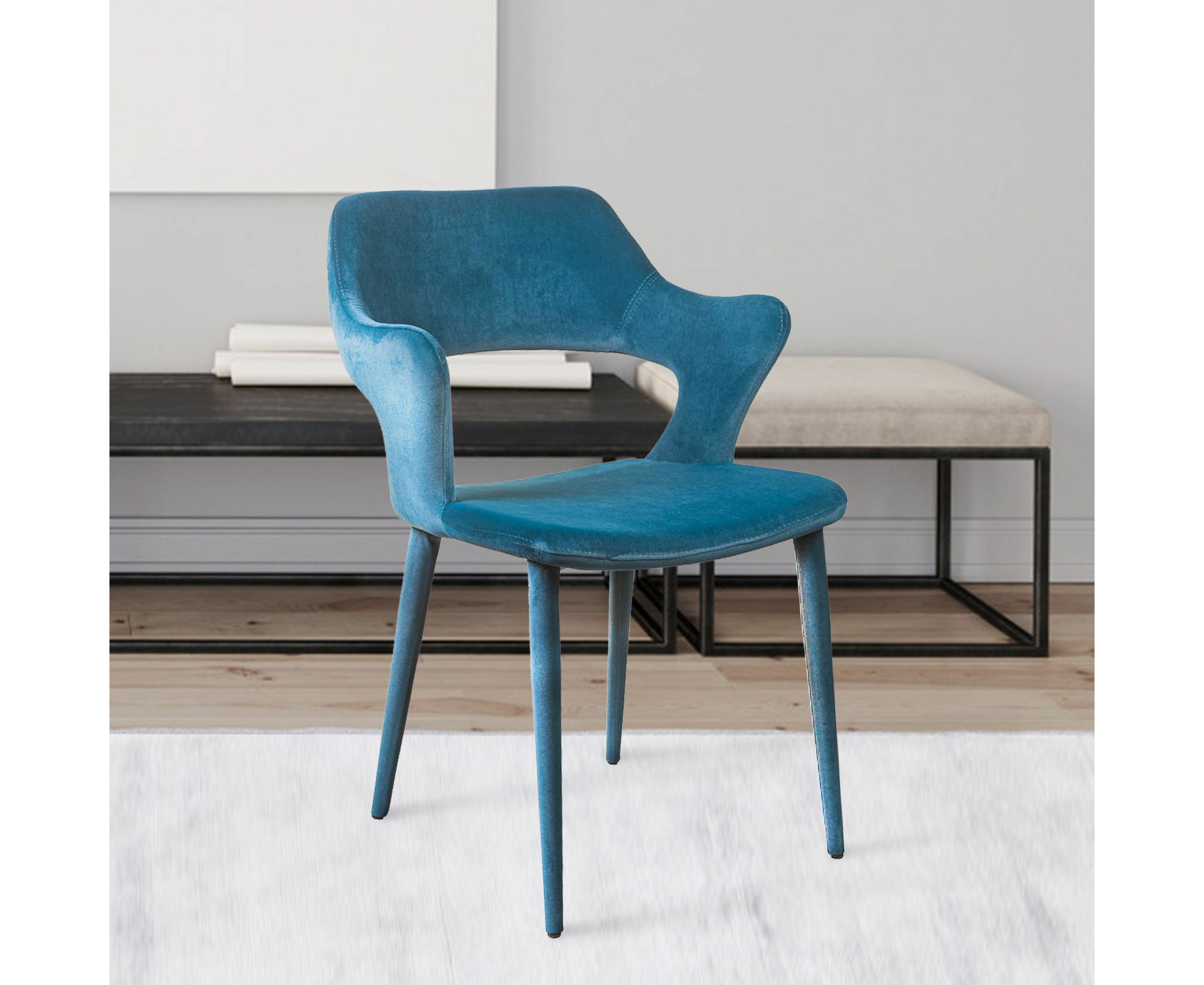 Ножки обеденных стульев обтянуты основной бархатной обивкой. Этот нюанс придает образу особую мягкость и целостность.