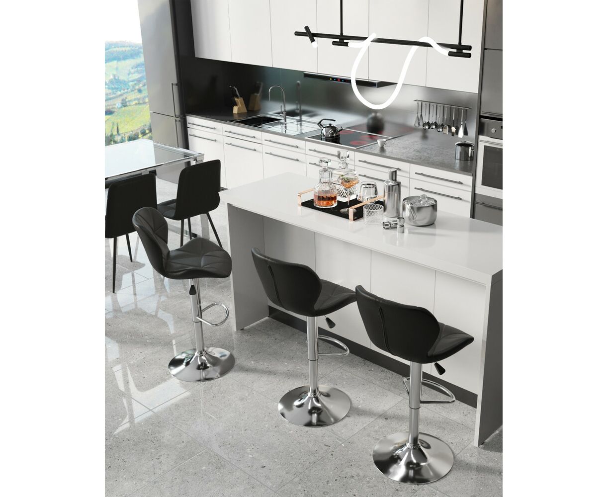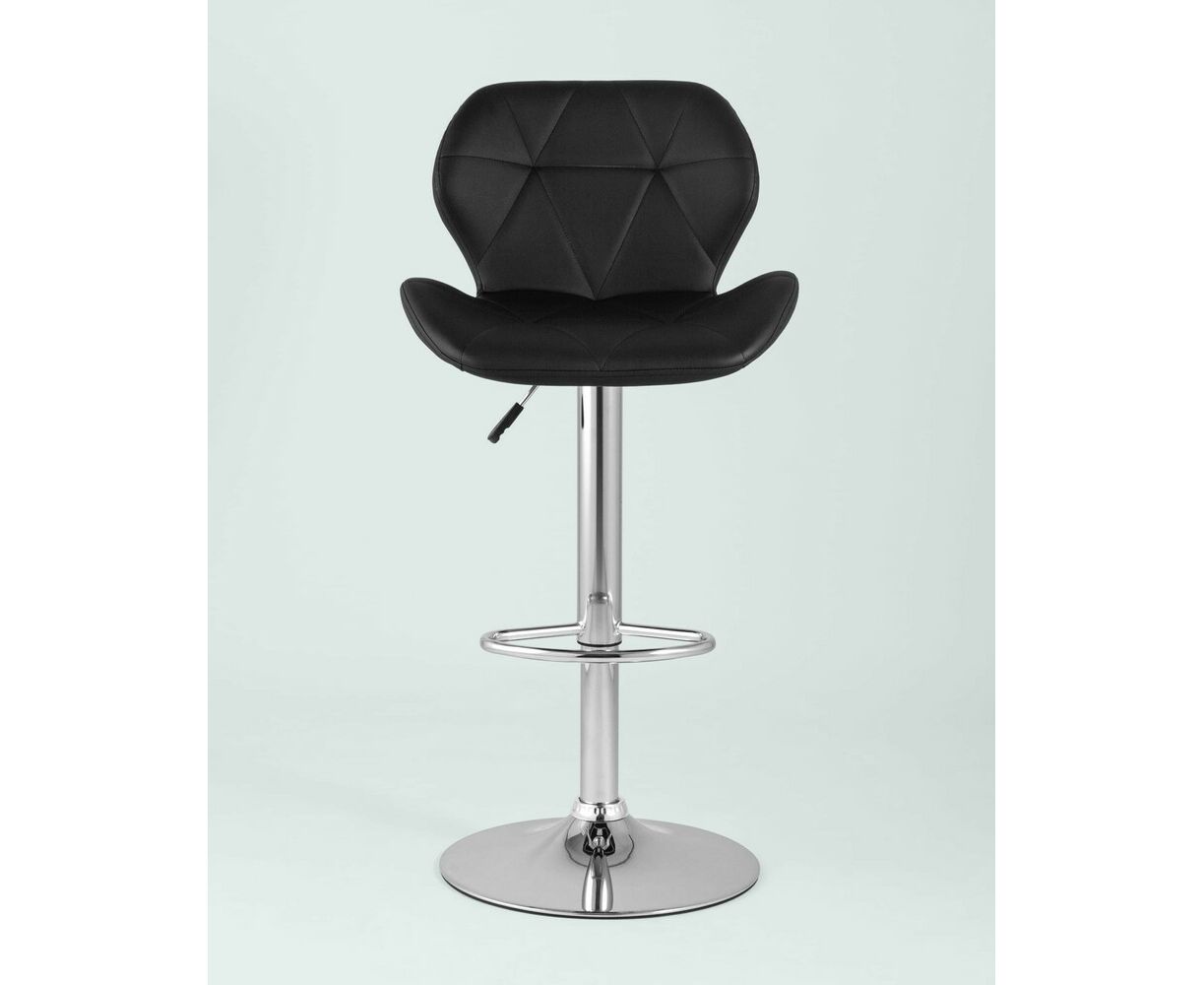 Спинка и сиденье обиты экокожей в черном цвете. Ножка выполнена из хромированного металла. Функция регулировки высоты сидения позволяет подобрать наиболее удобное положение.