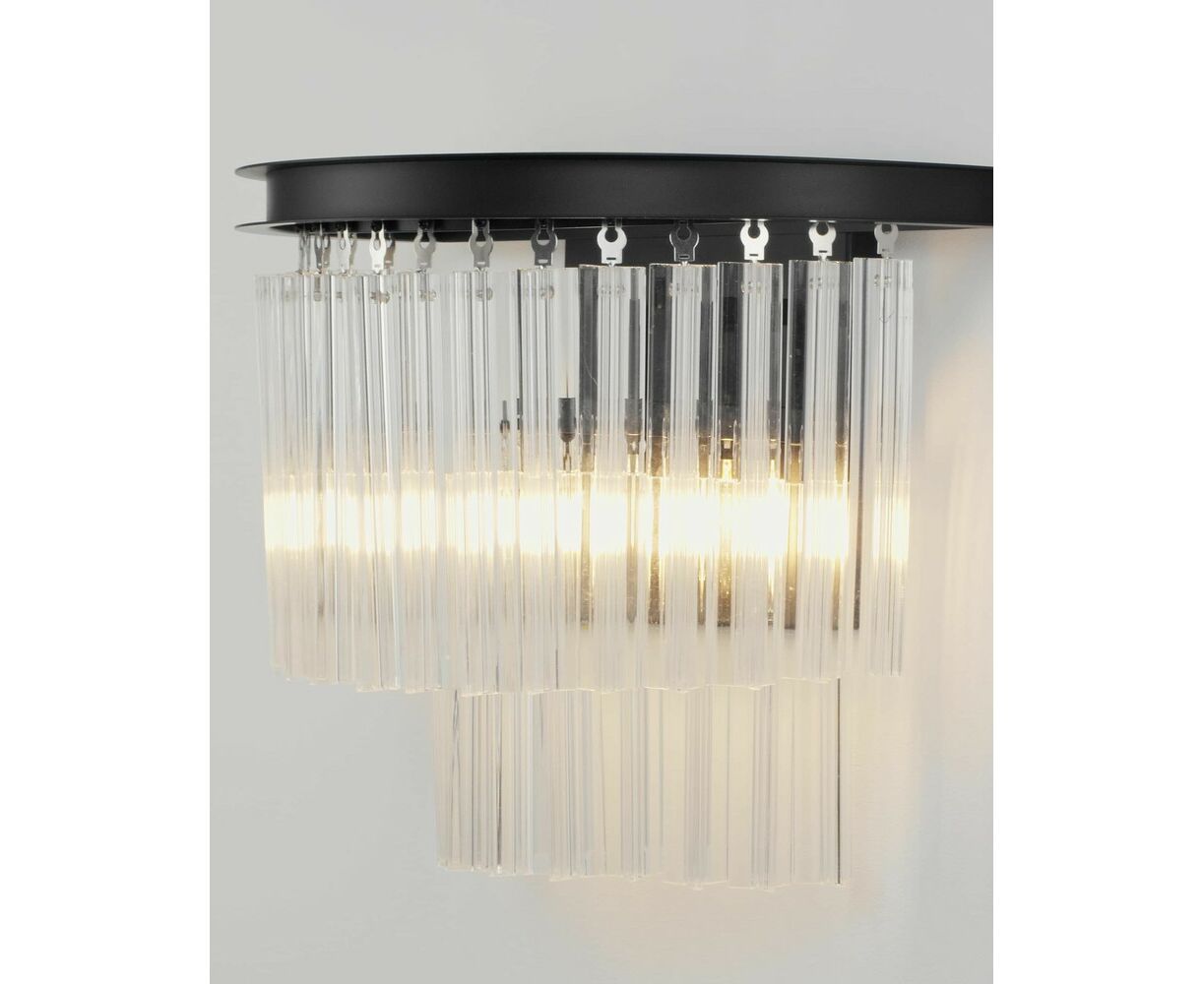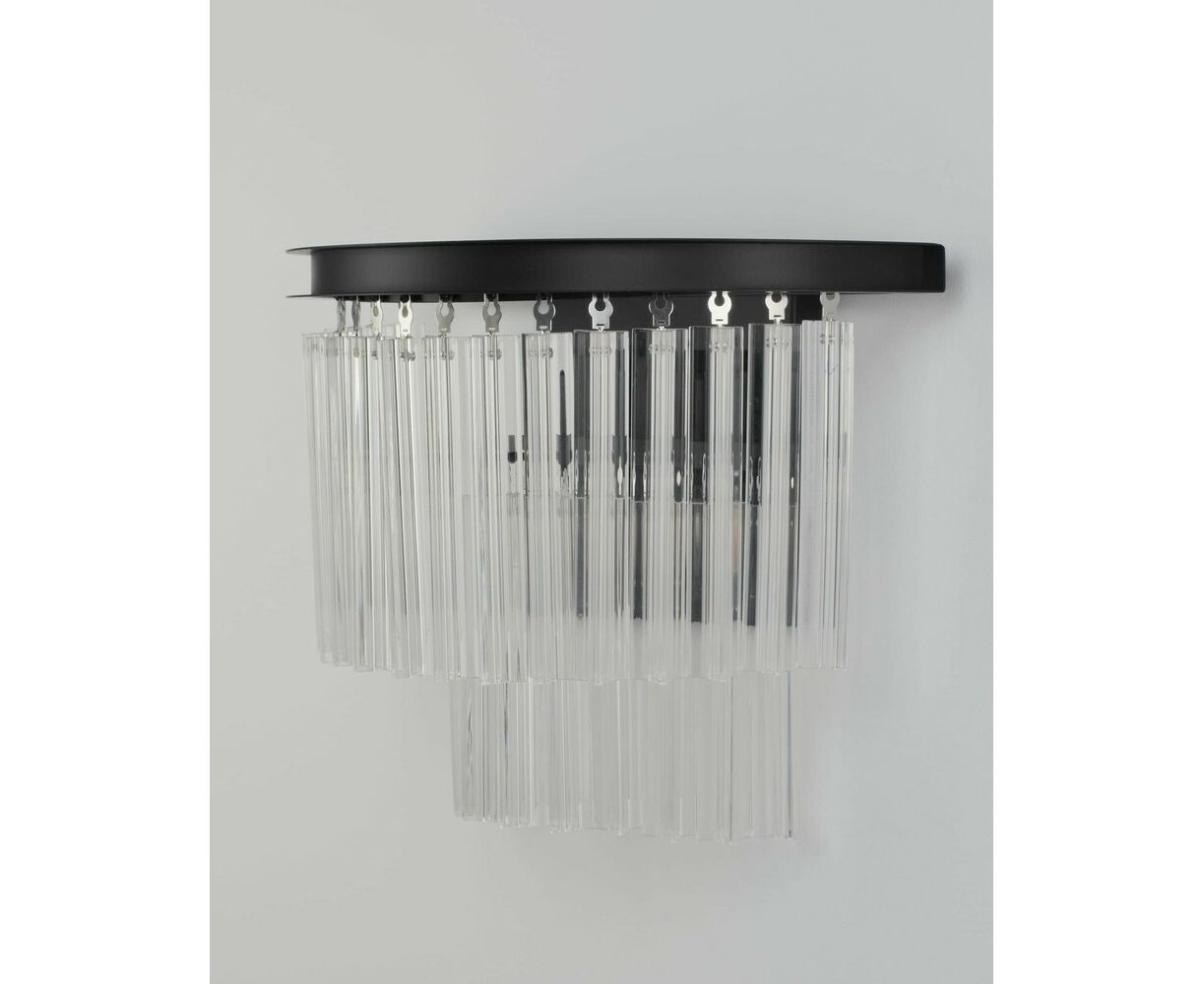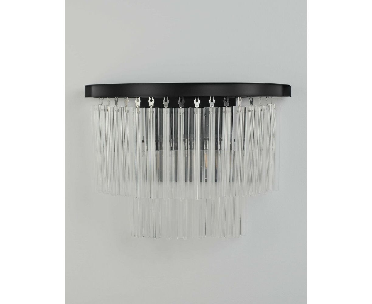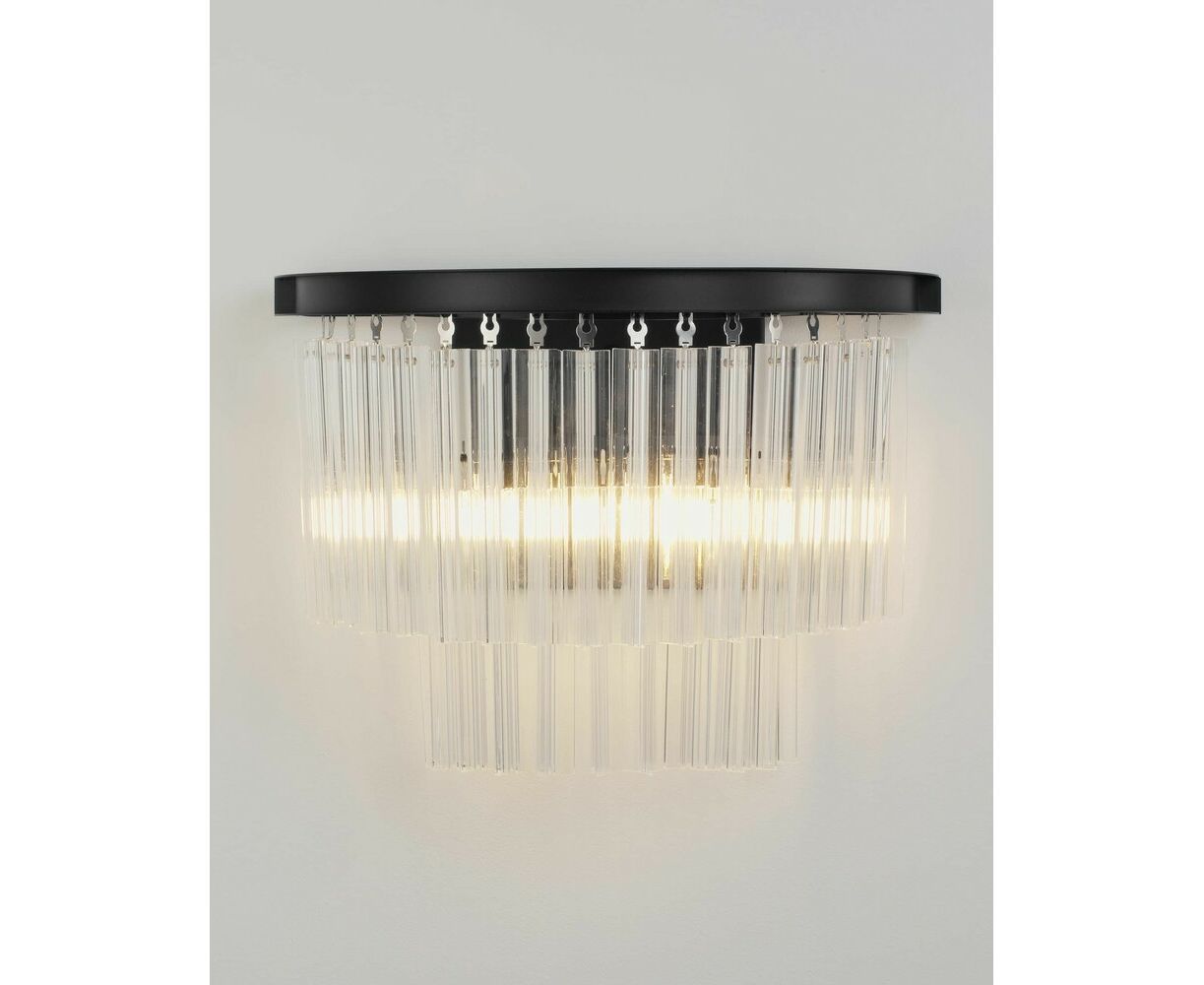 Стильный настенный светильник Avista. Черный металлический каркас гармонично сочетается со вставками из прозрачного хрусталя, которые красиво отражают свет при освещении. Светильник просто и надежно крепится к стене на планку. В качестве источника света подойдут лампы с цоколем Е14. С площадью освещения 15 кв.м, светильник отлично подойдет для спальни, коридора и зала, а также идеально впишется в вечернюю атмосферу ресторанов и кафе.