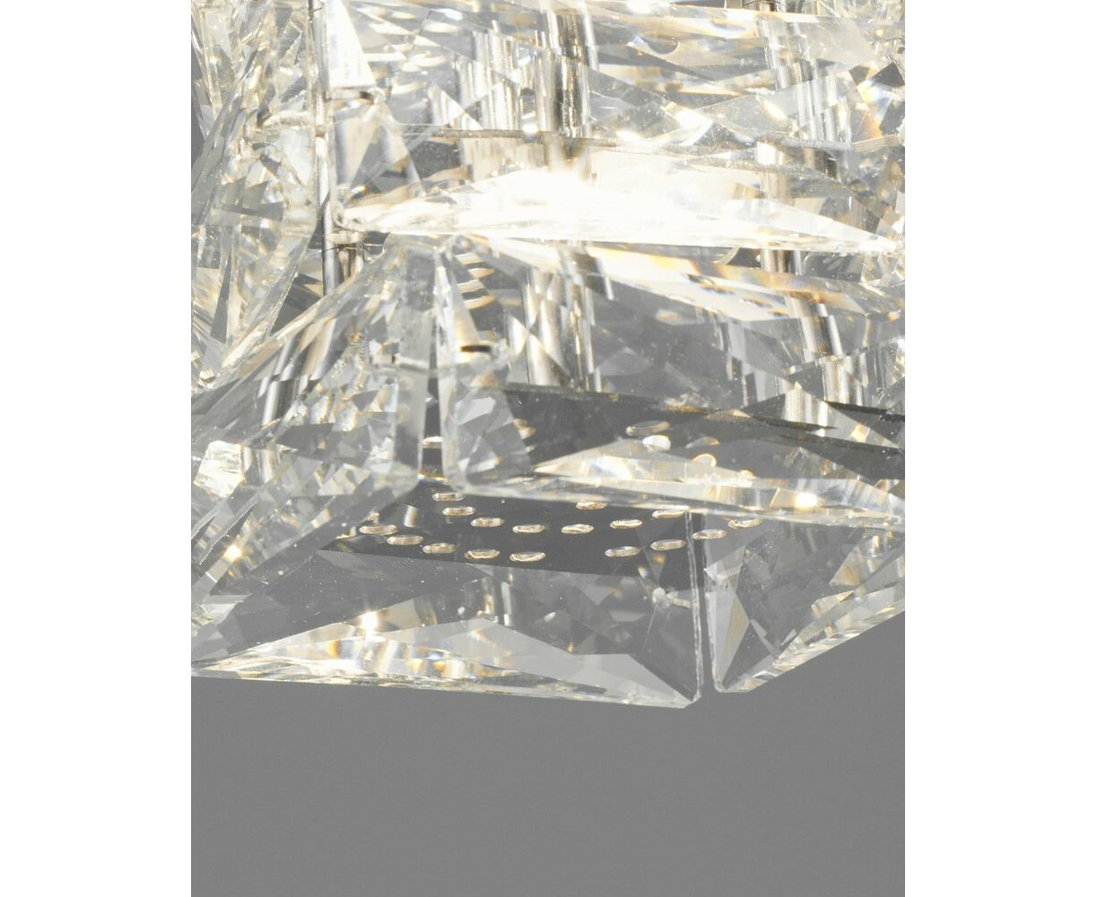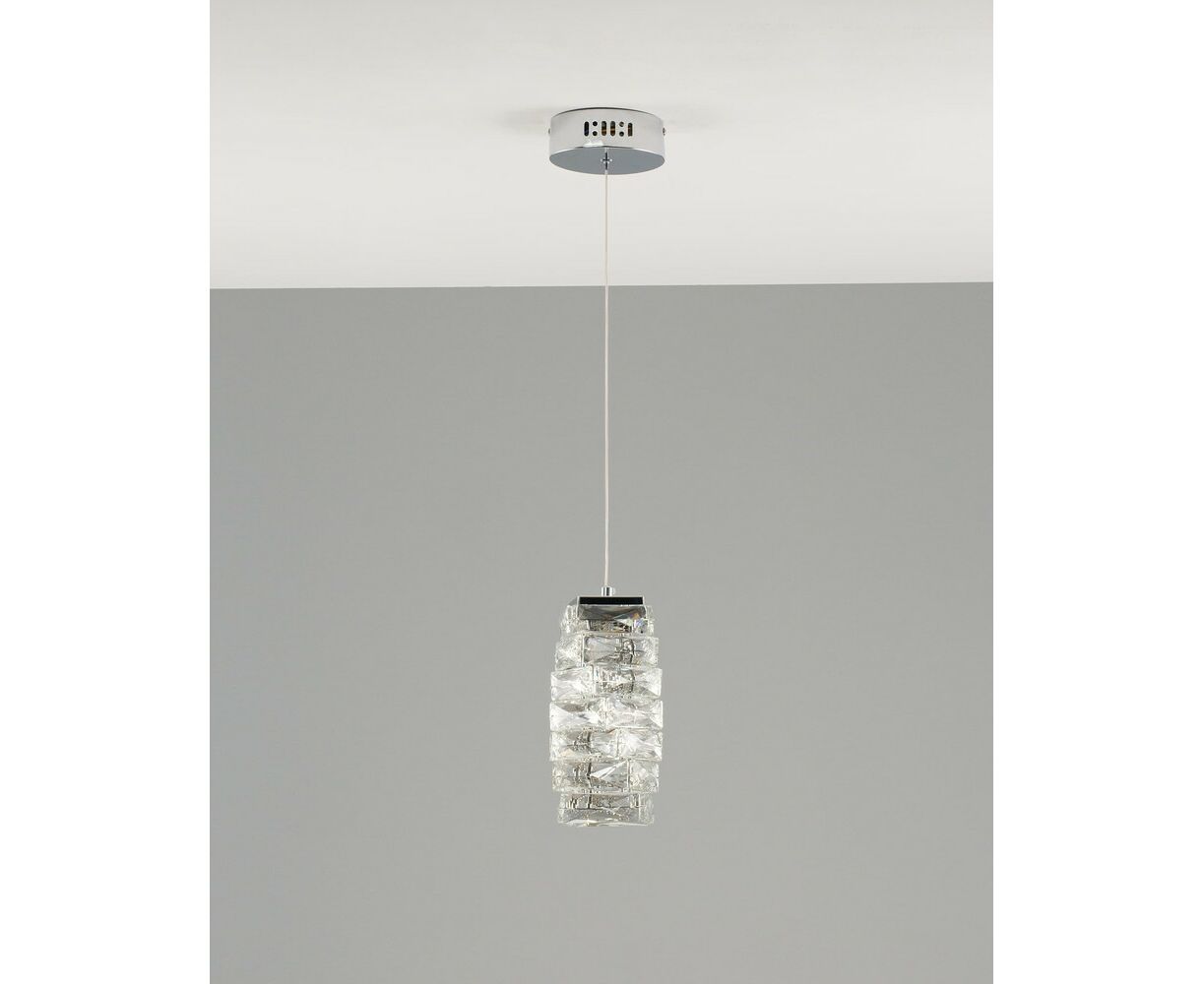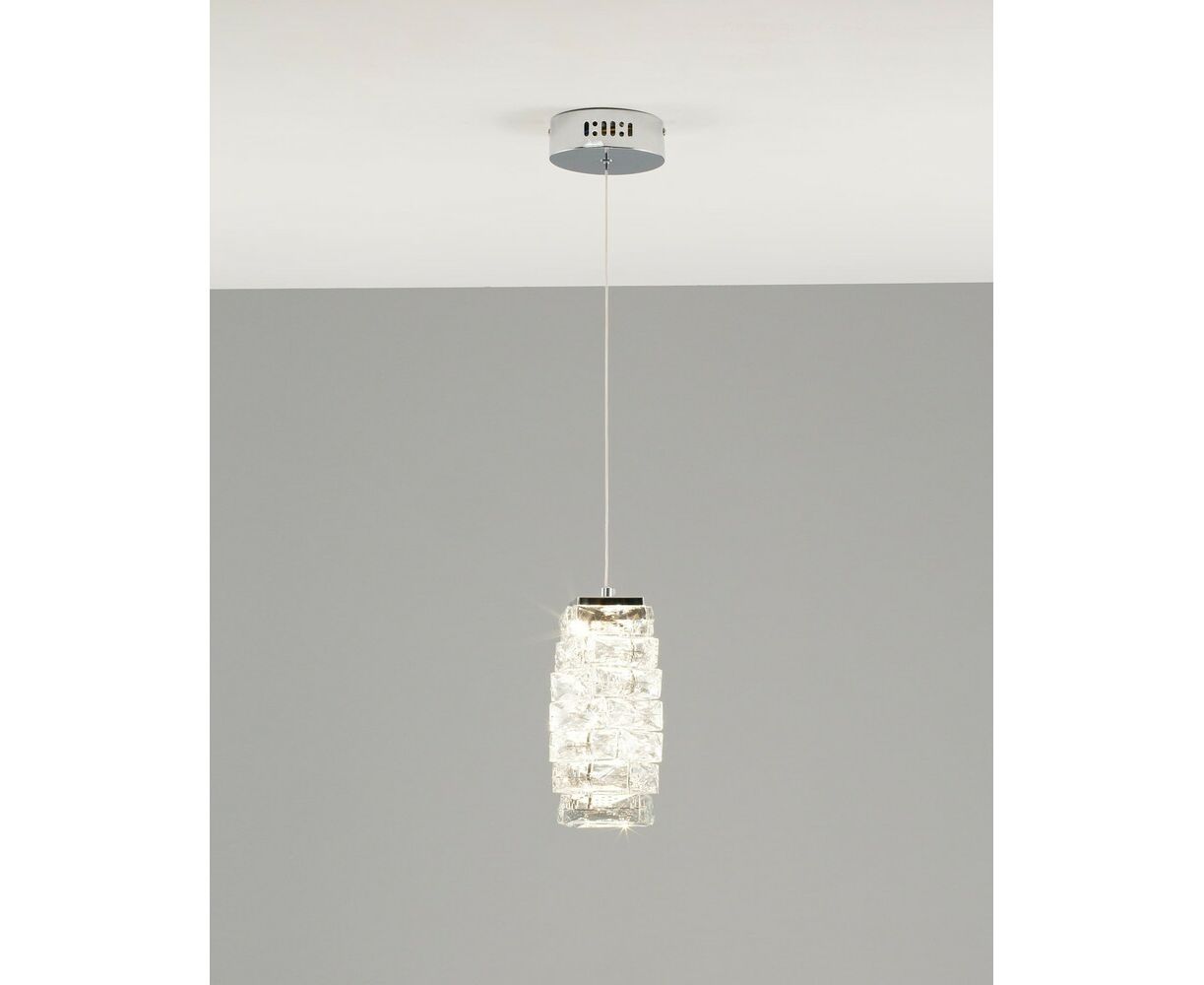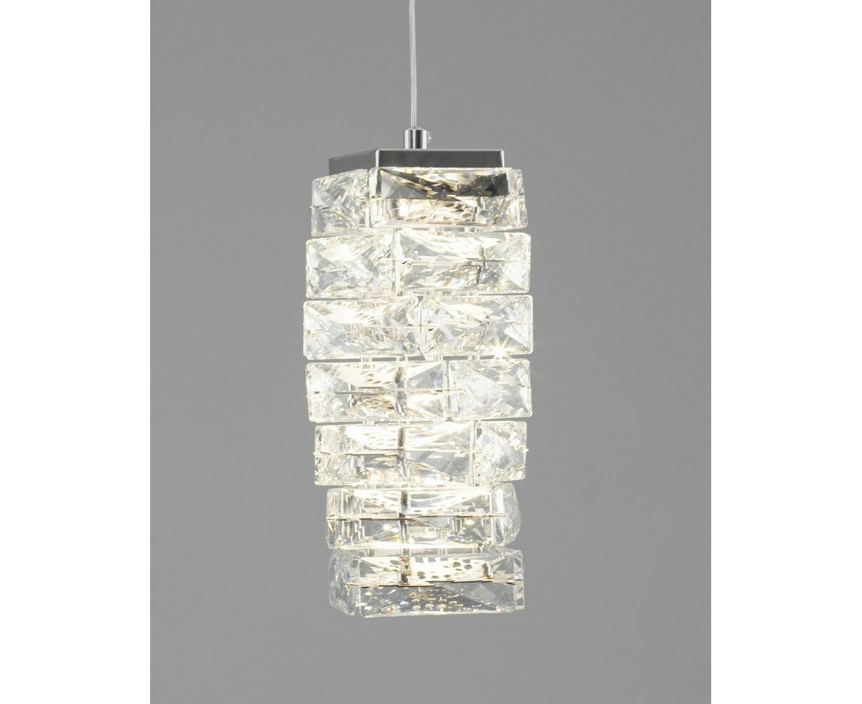 Лаконичный подвесной светильник с плафоном из прозрачного хрусталя. Граненные края плафона создают изумительную игру света при освещении. Минималистичный дизайн светильника дополнит интерьер кухни, прихожей, идеально смотрится в комплекте из нескольких штук и подойдет для освещения баров и кафе. В качестве источника света используются встроенные светодиоды общей мощностью 10 Вт. При необходимости высоту плафона можно отрегулировать при монтаже.
