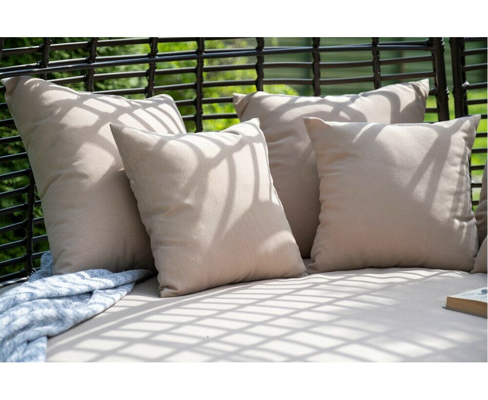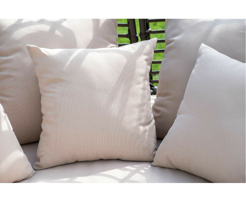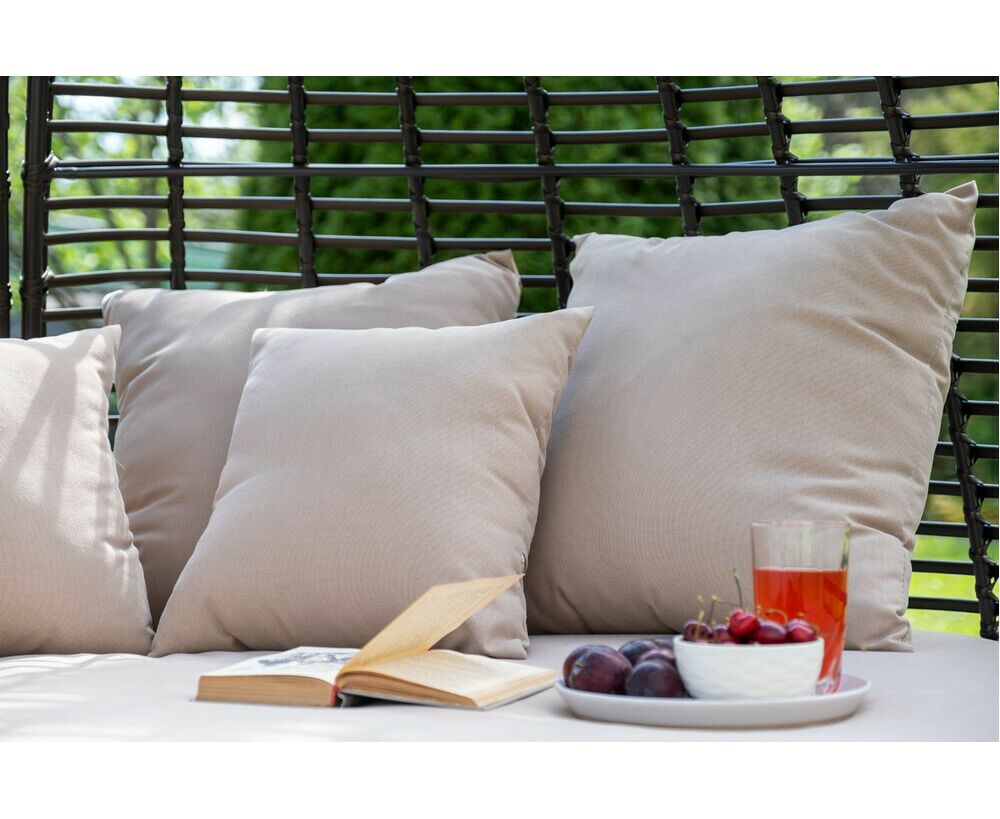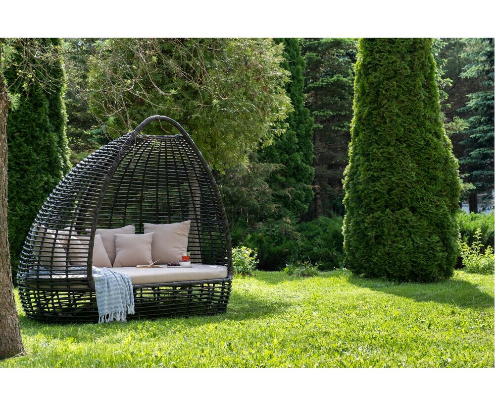 Функциональная полукруглая кровать выполнена плетением вручную из искусственного ротанга. Конструкция усилена алюминиевым каркасом.