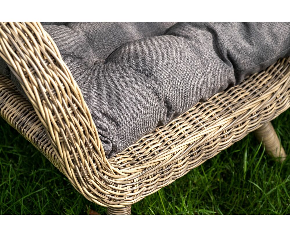 Одноместная лаунж-зона "Толедо" для зоны отдыха выполнена из круглого искусственного ротанга в натуральном соломенном цвете.