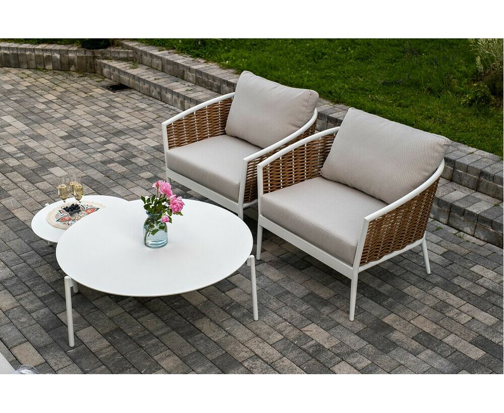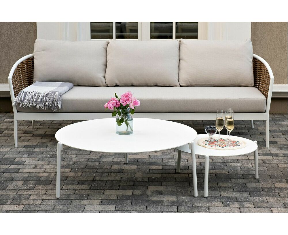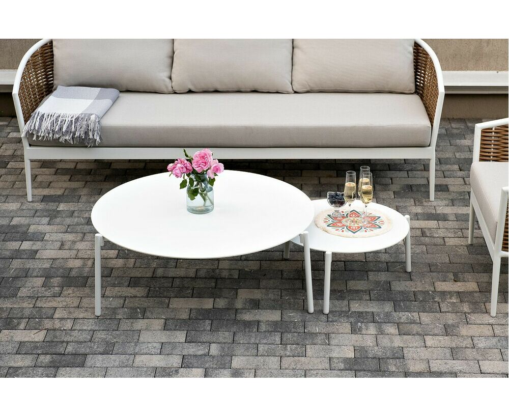 Журнальные столики выполнены из алюминия белого цвета.