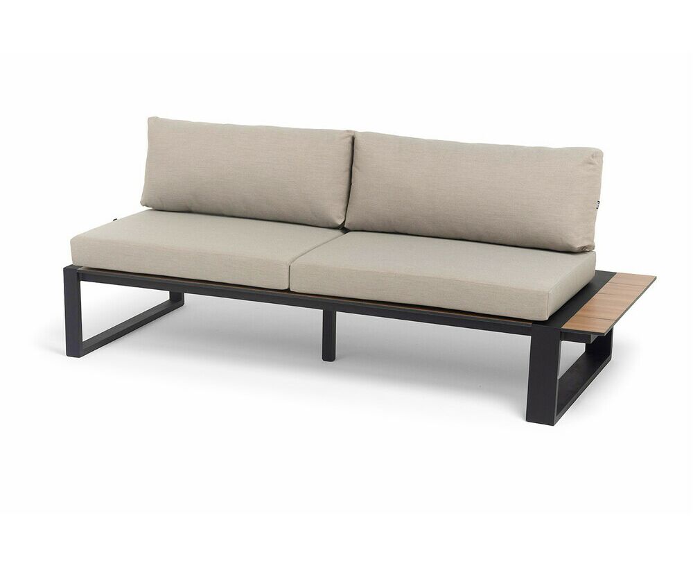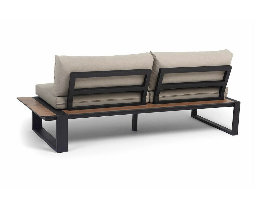 "Тулон" левый модуль, каркас алюминий, HPL "дуб", черный муар, ткань бежевая 15052