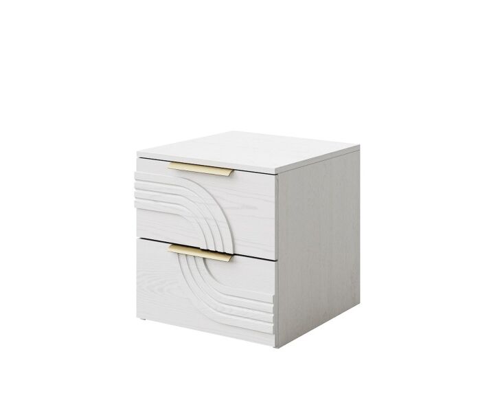 Тумба прикроватная «Монтиз», 2я КМК 1003.2 с двумя выдвижными ящиком. Каркас изготовлен из ЛДСП цвета белый текстурный, фасад из МДФ цвета белый ясень текстурный. Конструкция напольная. Направляющие скрытого монтажа с доводчиком.