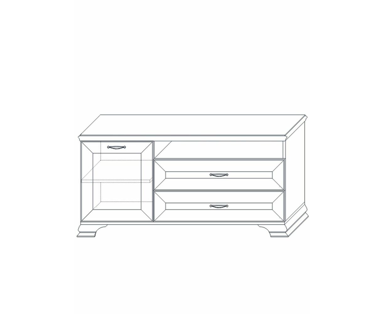 Для закрытого хранения предусмотрены два 2 ящика и отделение с дверкой. Ниша под крышкой визуально облегчает конструкцию изделия и помогает разместить различную телевизионную аппаратуру.