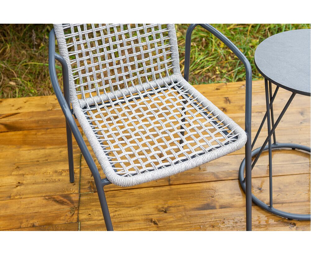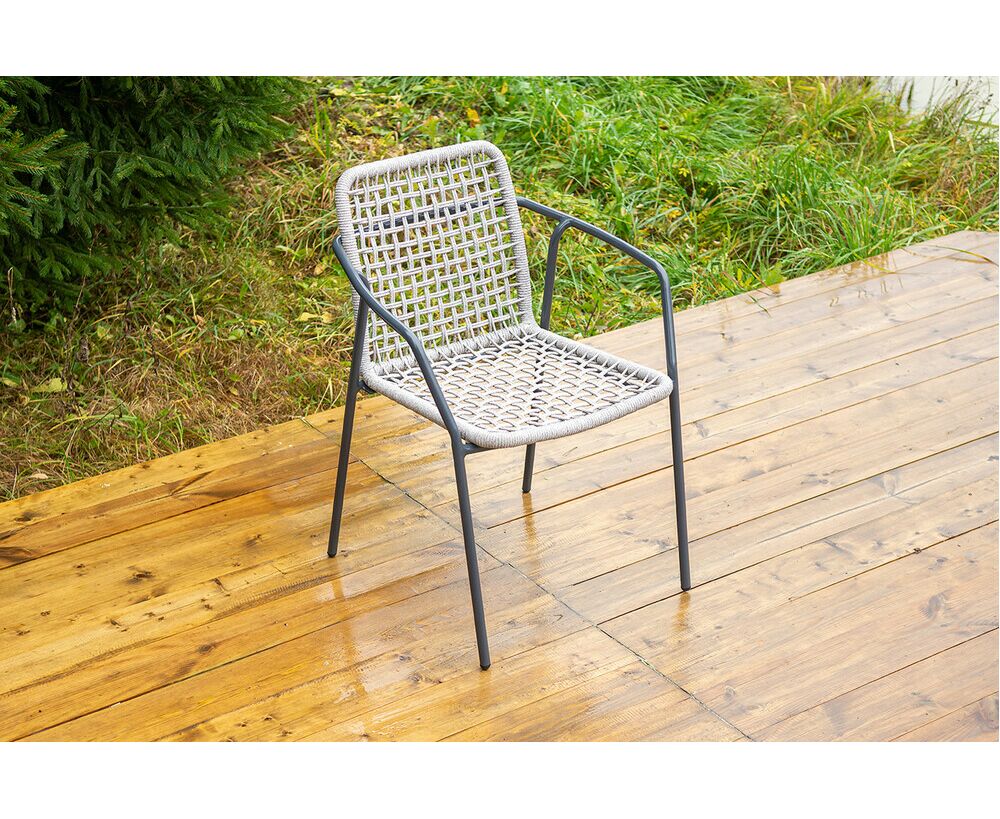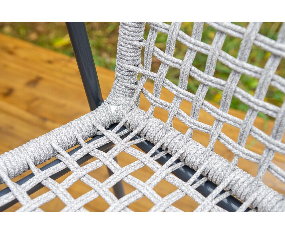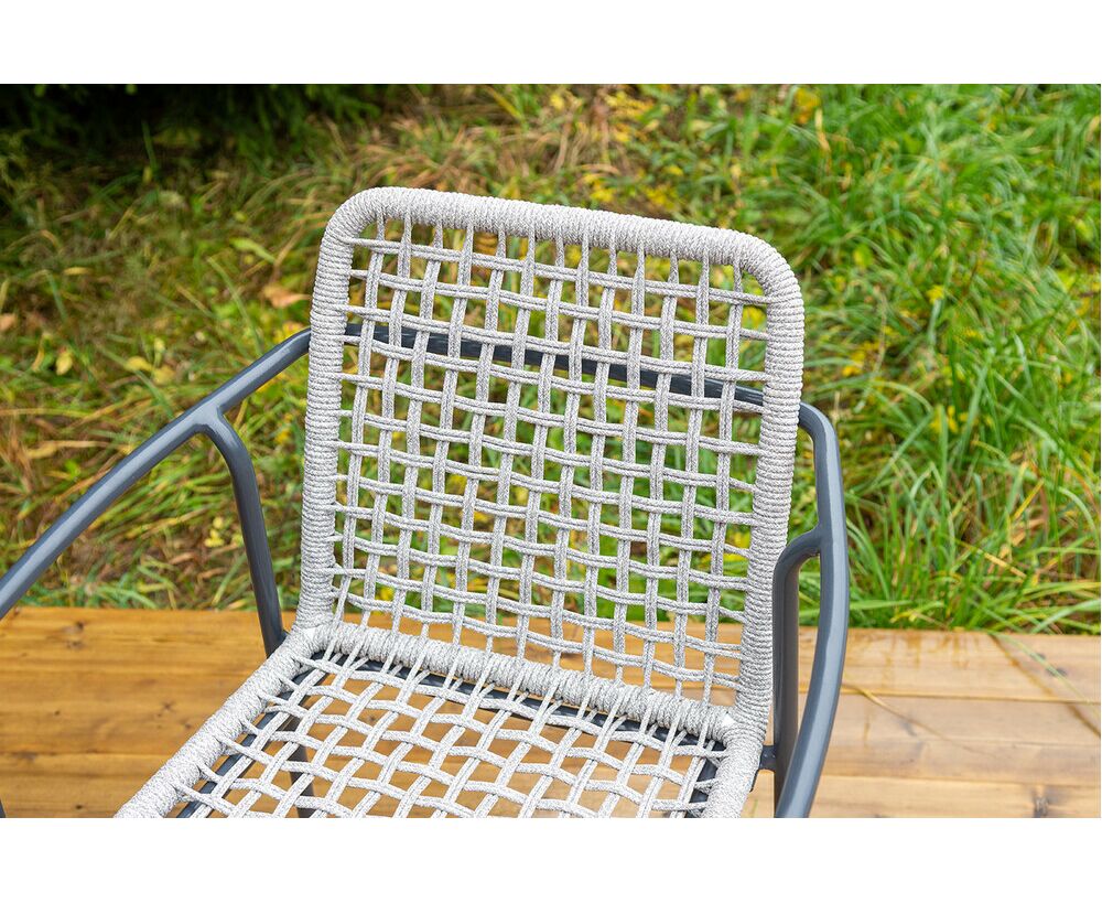 Стул «Тунис» — плетеная модель из роупа (полиэфирной веревки) с алюминиевым каркасом темно‑серого цвета (RAL7024).