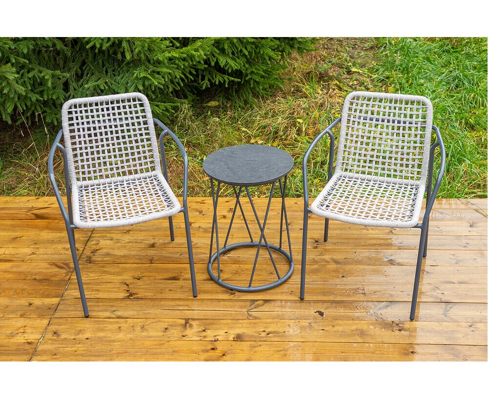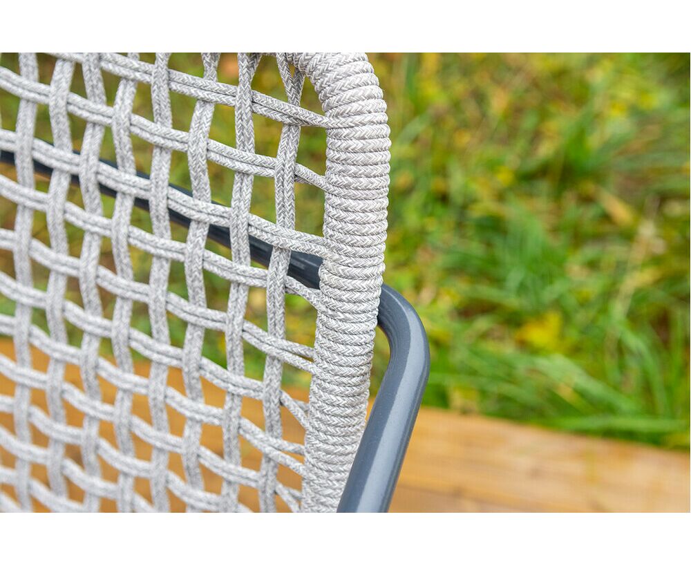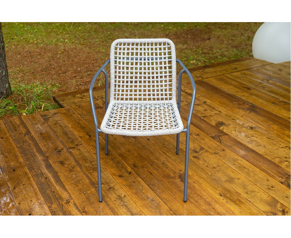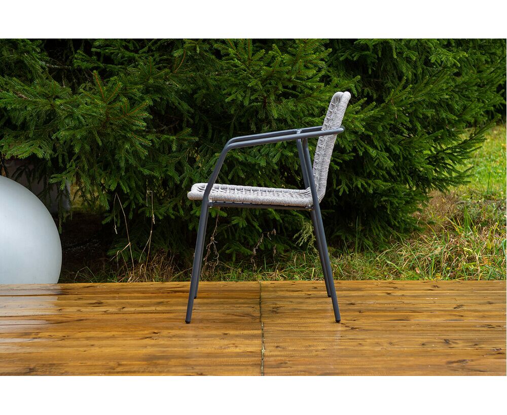 Стул «Тунис» — плетеная модель из роупа (полиэфирной веревки) с алюминиевым каркасом темно‑серого цвета (RAL7024).