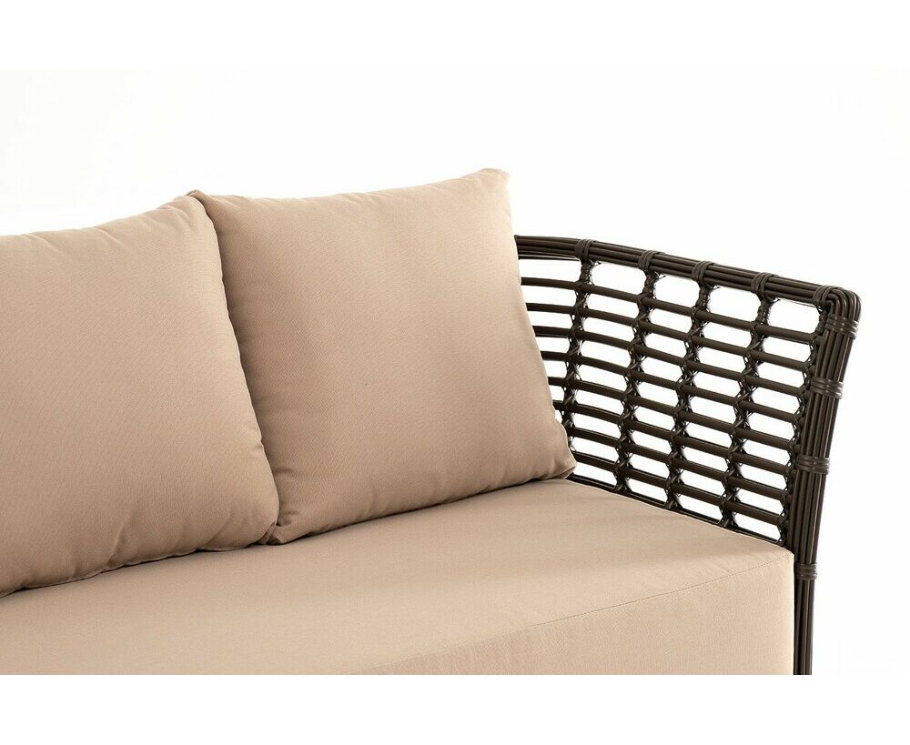 Диван "Валенсия" подходит для размещения сразу трех персон. Его основа из прочного алюминиевого каркаса.