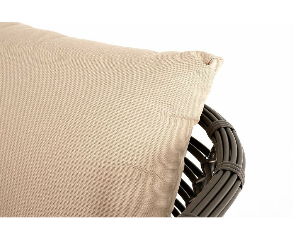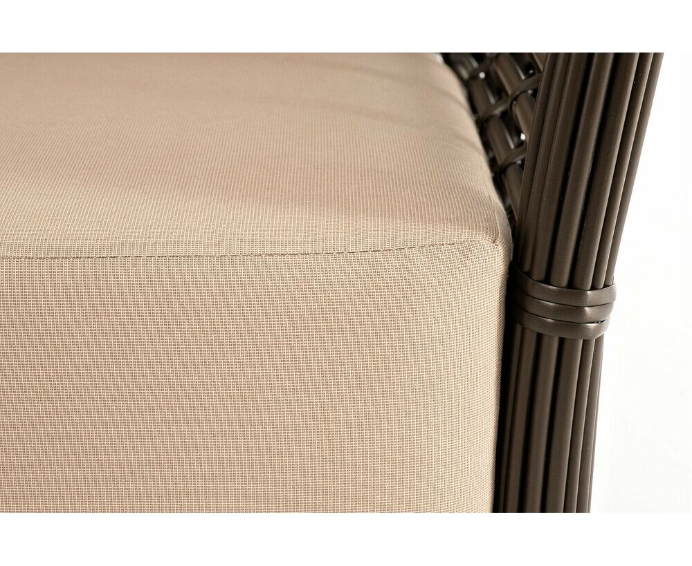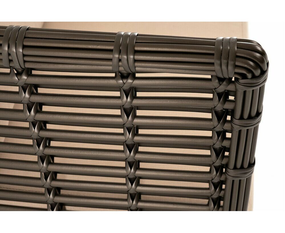 Ручное круглое плетение является основным декоративным элементом мебели. Оно выполнено из искусственного ротанга в бронзовом цвете.
