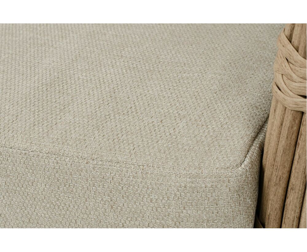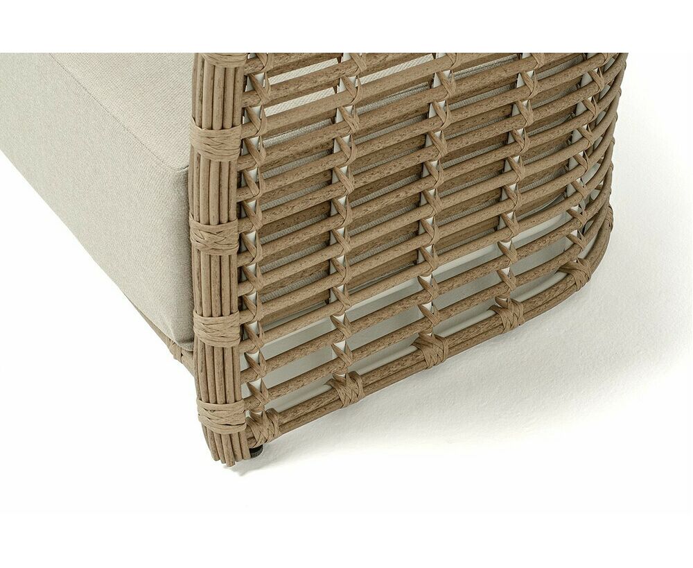 Ручное круглое плетение является основным декоративным элементом мебели. Оно выполнено из искусственного ротанга в соломенном цвете.