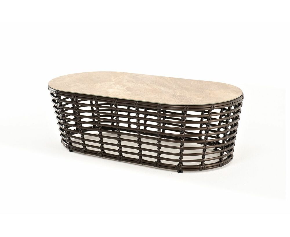 Плетеный столик представлен в бронзовом цвете.
