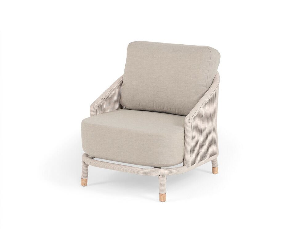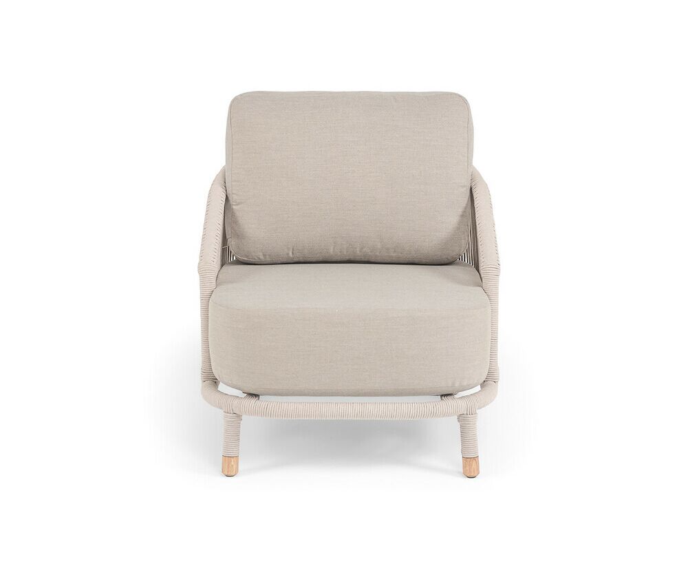 "Верона" кресло плетеное из роупа, каркас алюминий белый муар, роуп бежевый круглый, ткань бежевая 15052