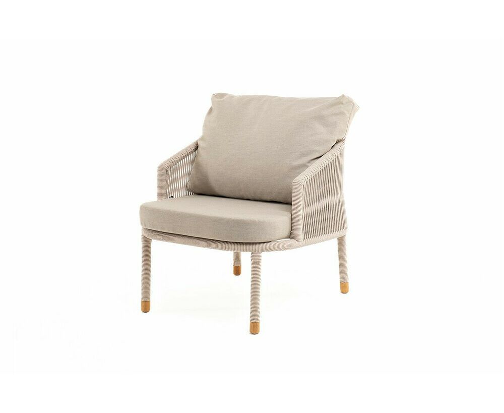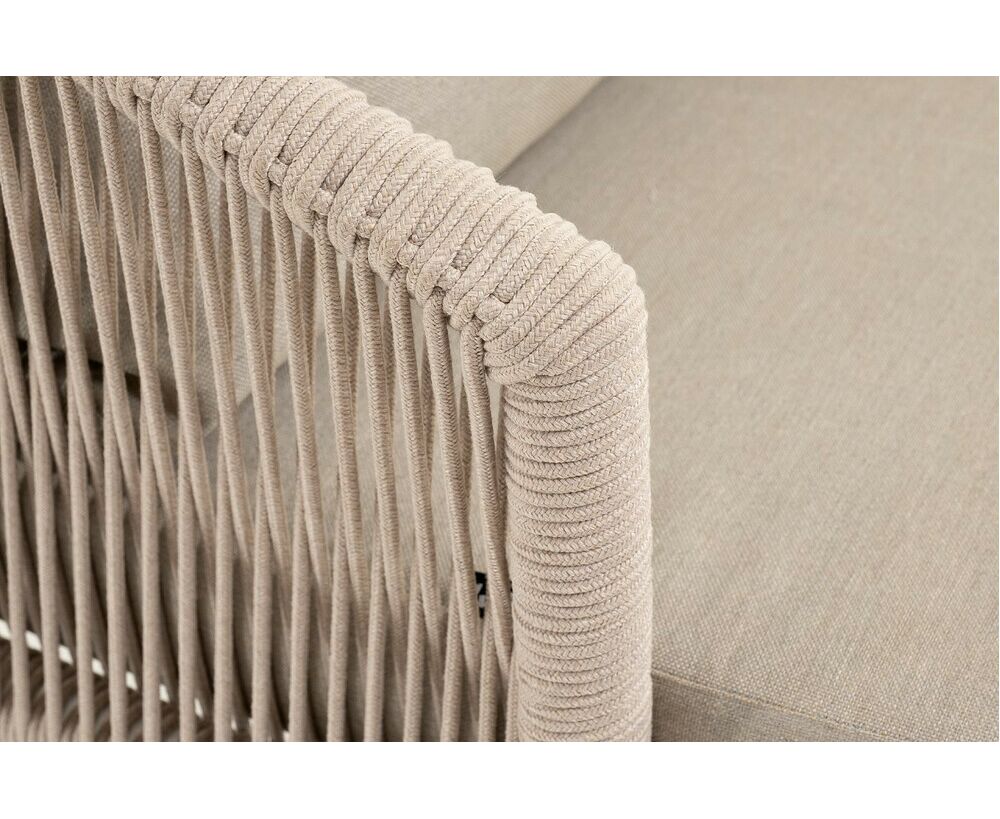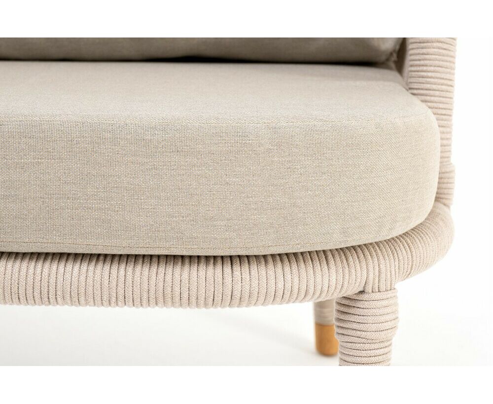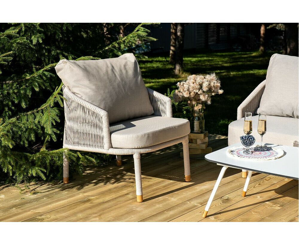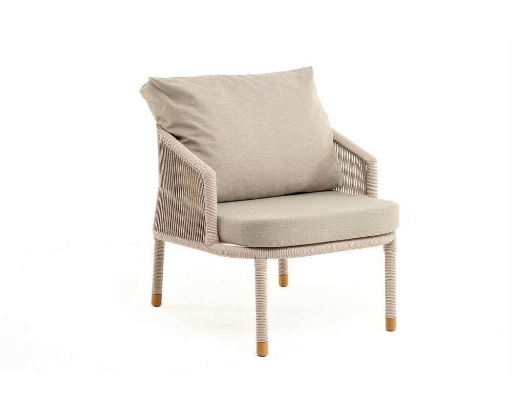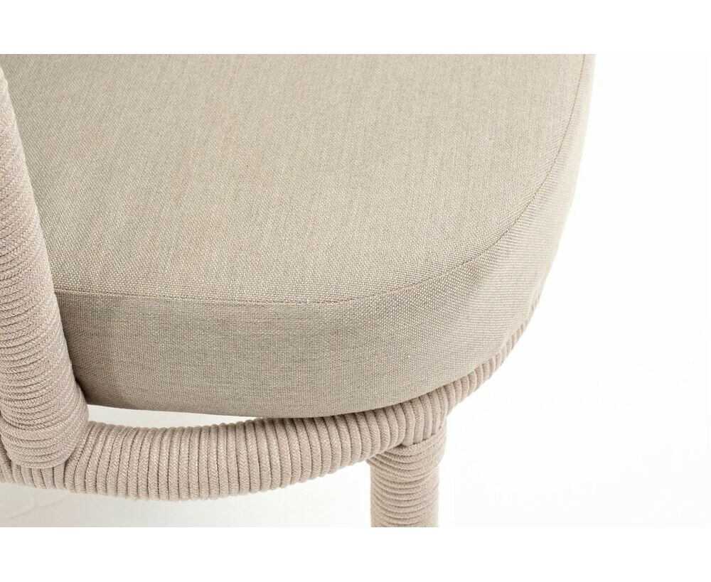 "Верона" кресло плетеное из роупа, каркас алюминий белый муар, роуп бежевый круглый, ткань бежевая 15052