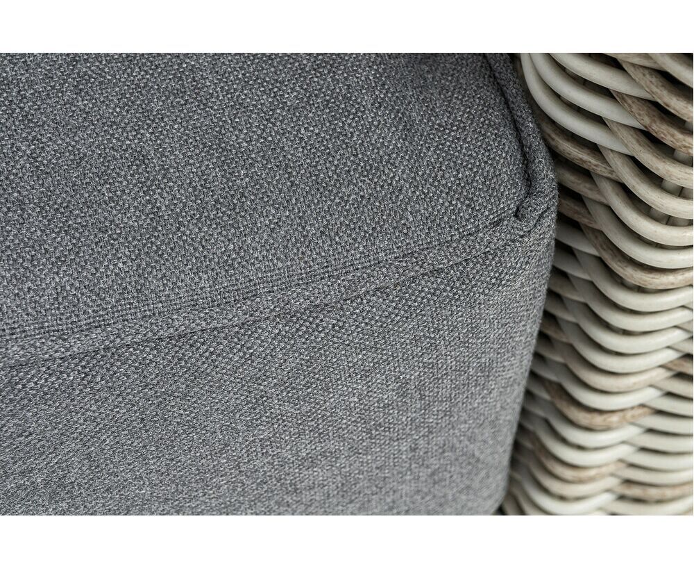 В комплектацию входят мягкие подушки для комфортного расположения. Чехлы съёмные серого цвета из высококлассного полиэстера с плотностью 300гр/м2. Габариты модели составляют 1000×900×755 мм, толщина подушки: 150 мм, вес: 23 кг.