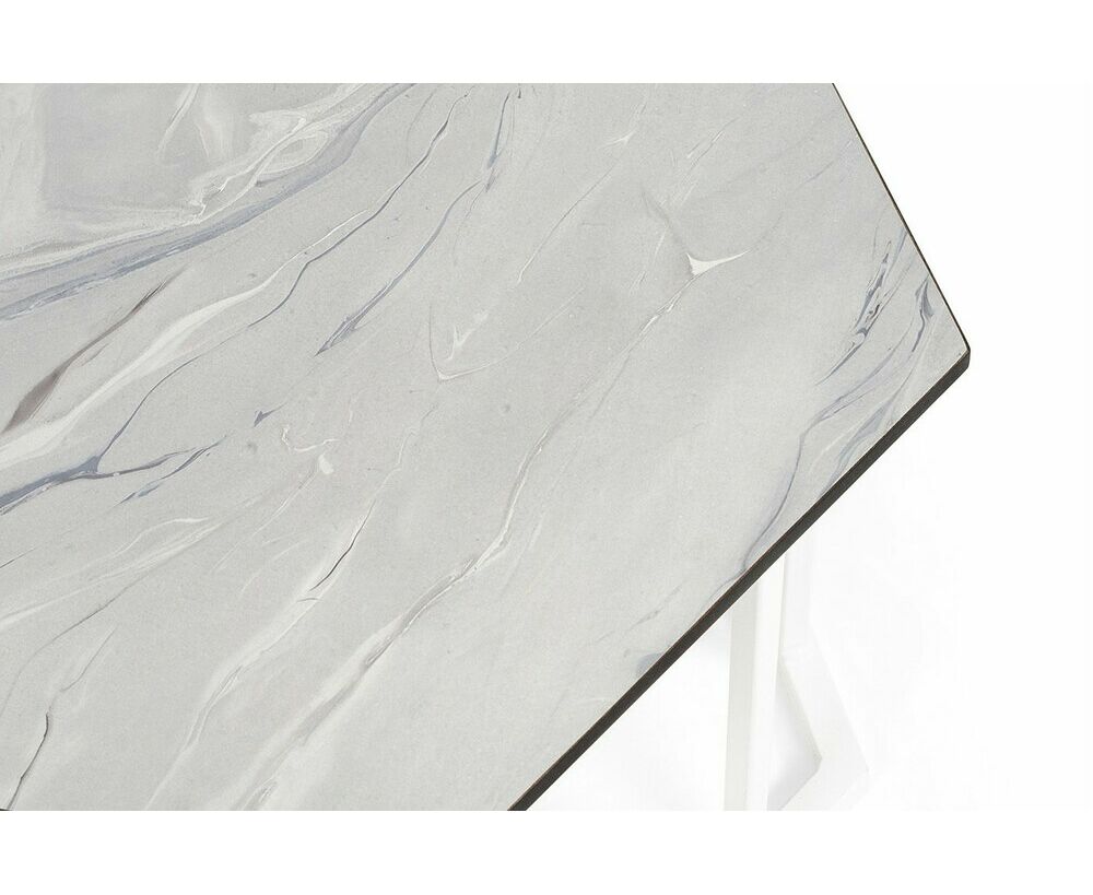 "Женева" интерьерный стол из HPL шестиугольный, D50, H35, цвет "мрамор пепел", каркас из стали белый муар