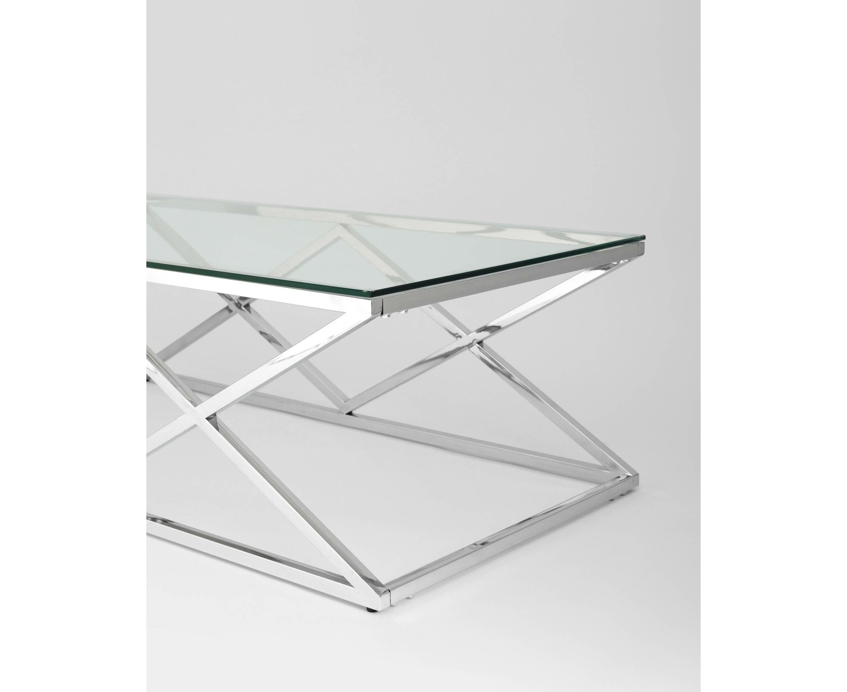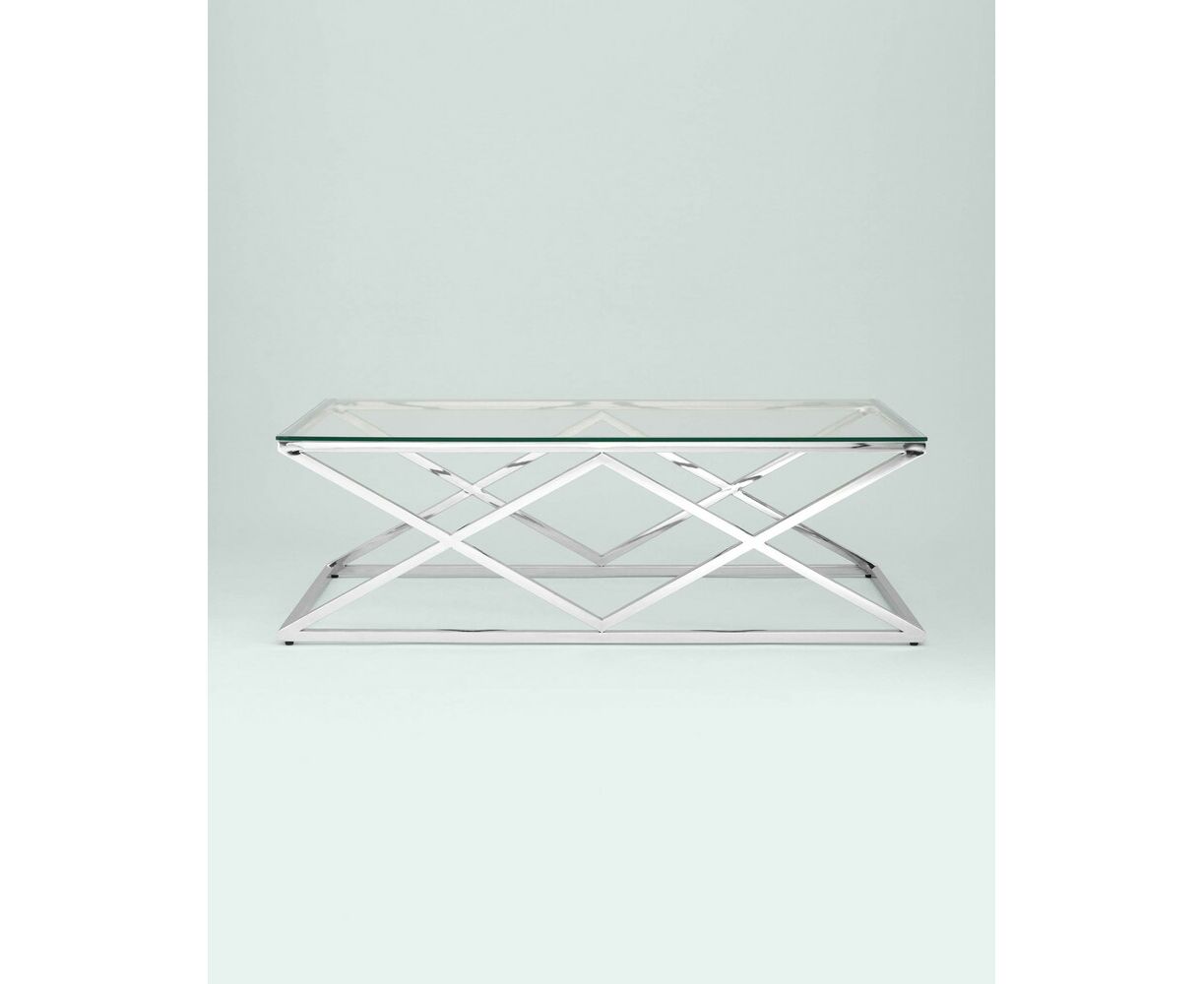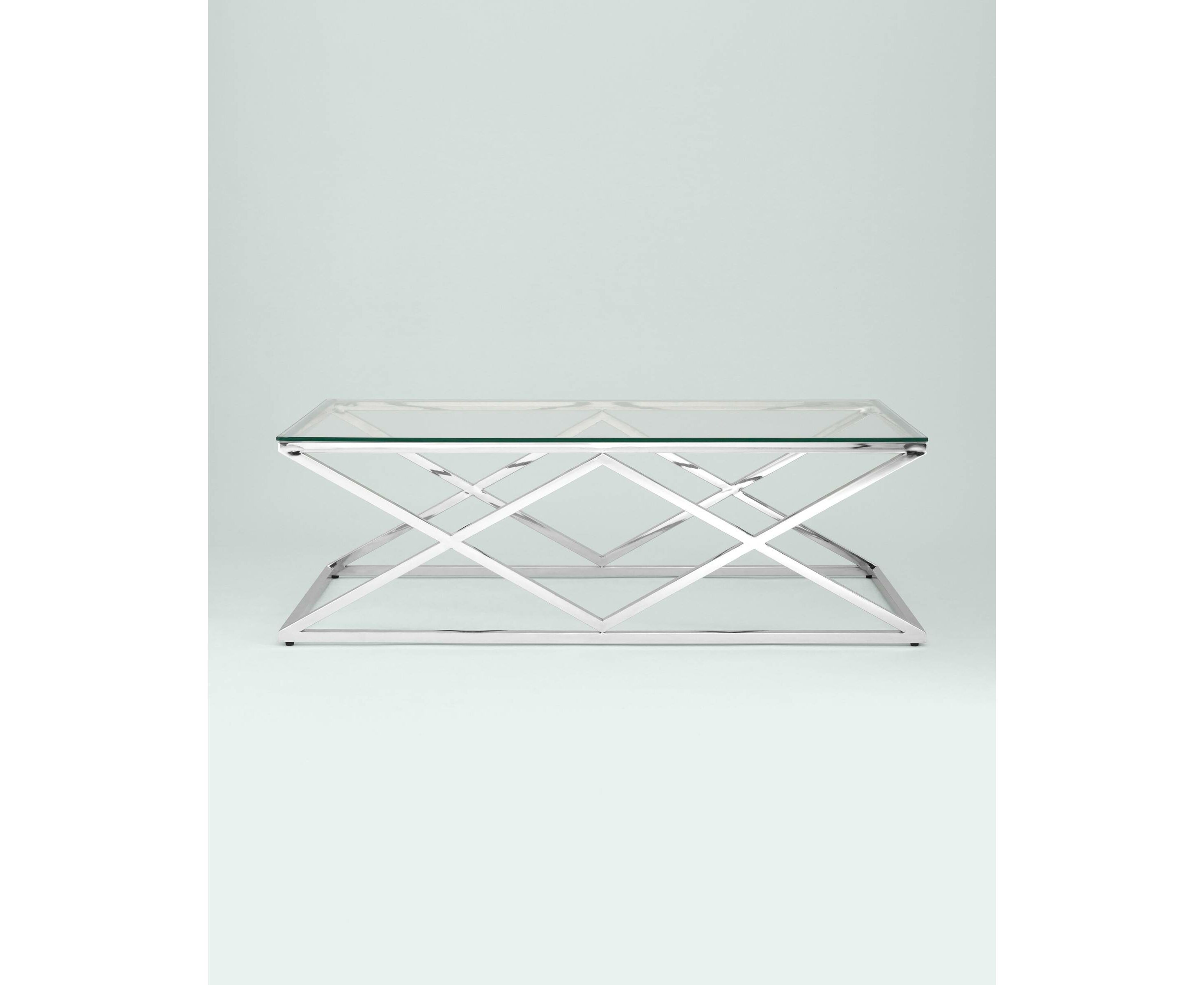 Журнальный стол ИНСИГНИЯ, благодаря оригинальной форме, станет ярким дизайнерским акцентом в интерьере. Каркас стола изготовлен из нержавеющей стали, столешница - закаленное стекло.