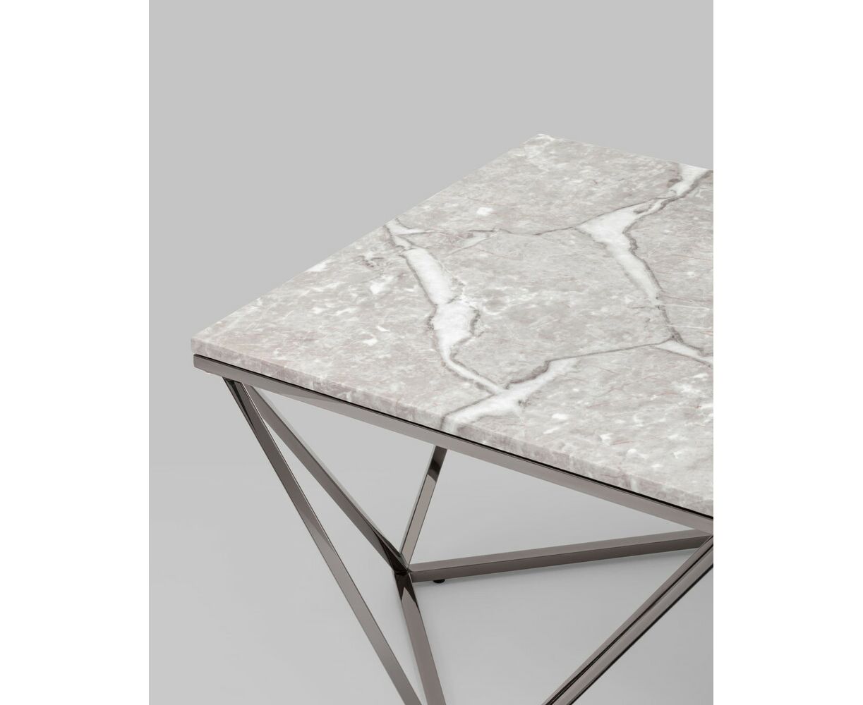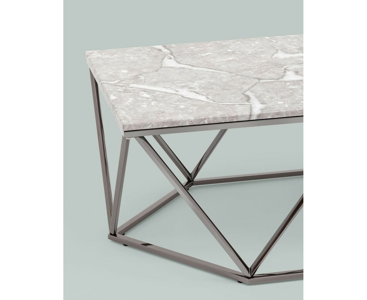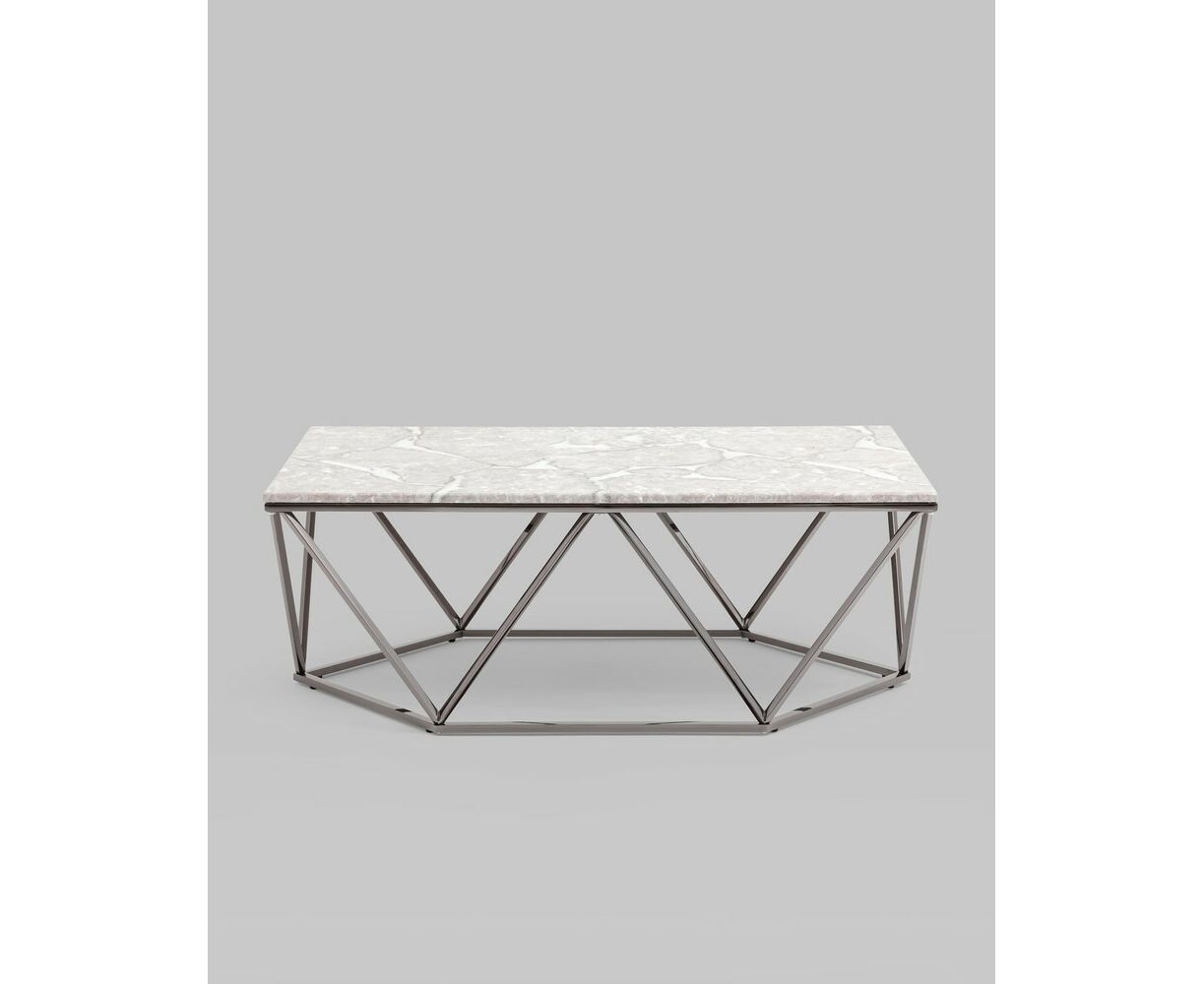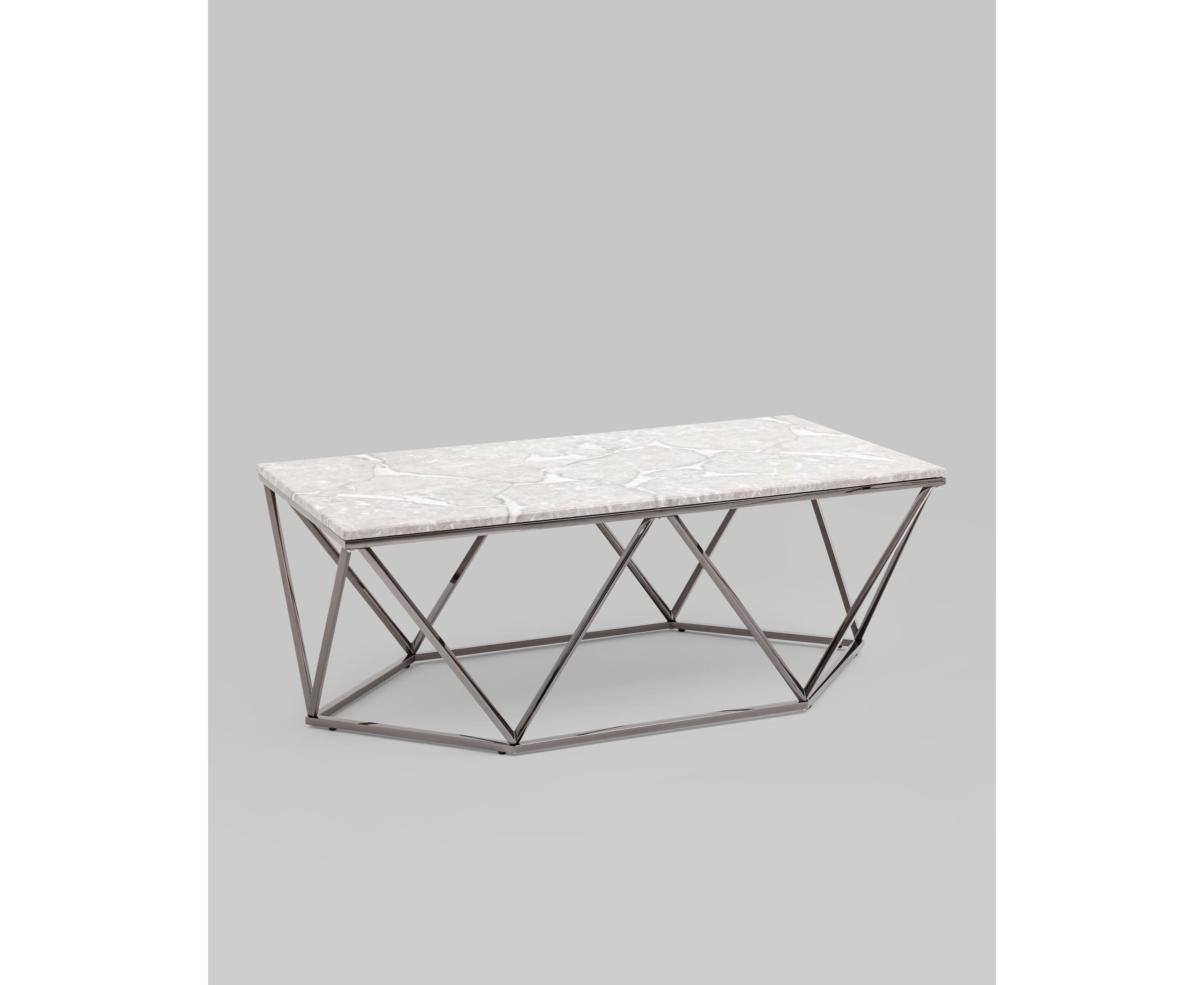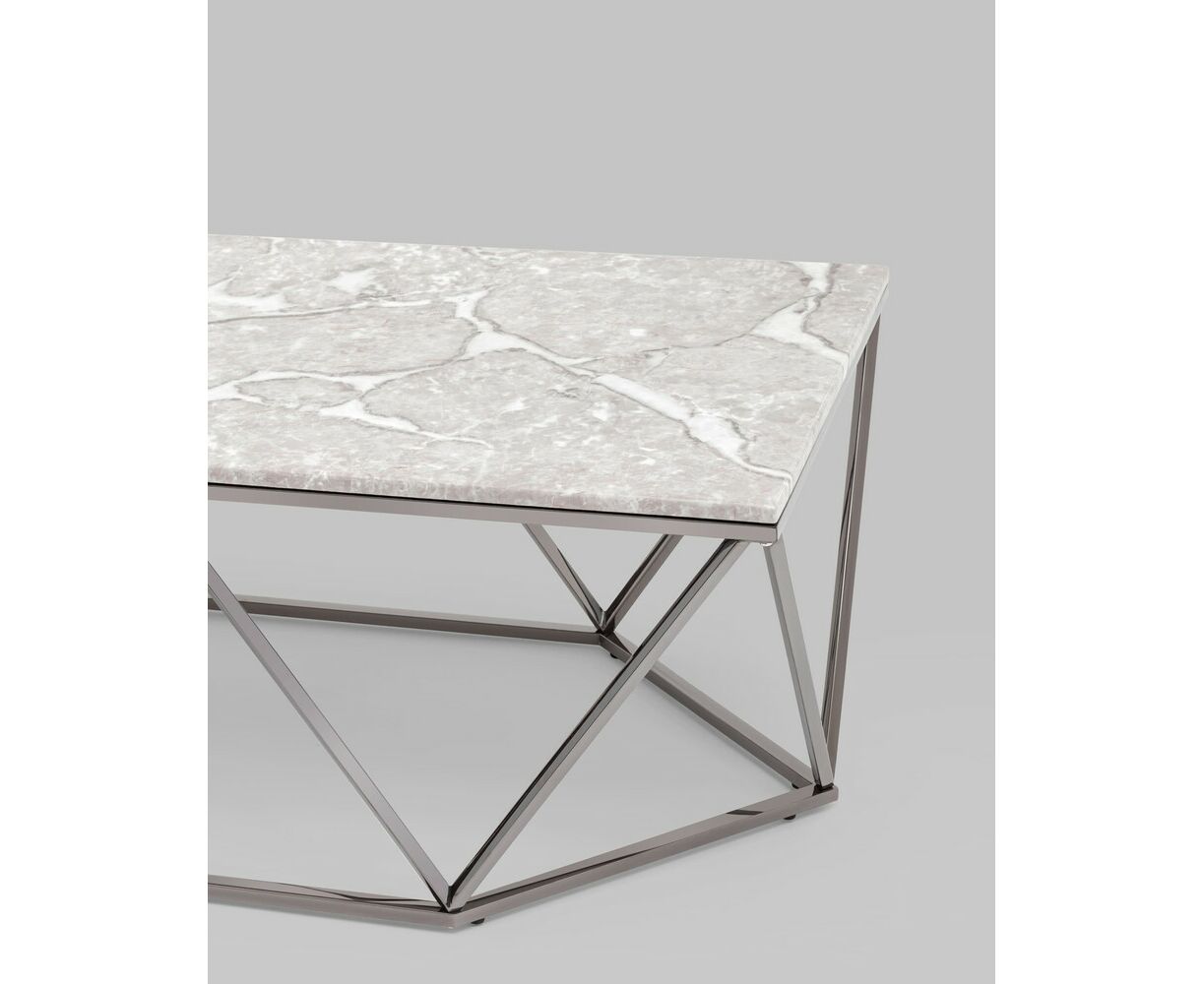 Журнальный столик Авалон 122*66 серый мрамор сталь темный хром