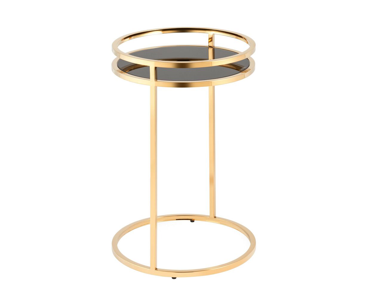 Журнальный столик Гестия 41*60см стекло черное сталь золото