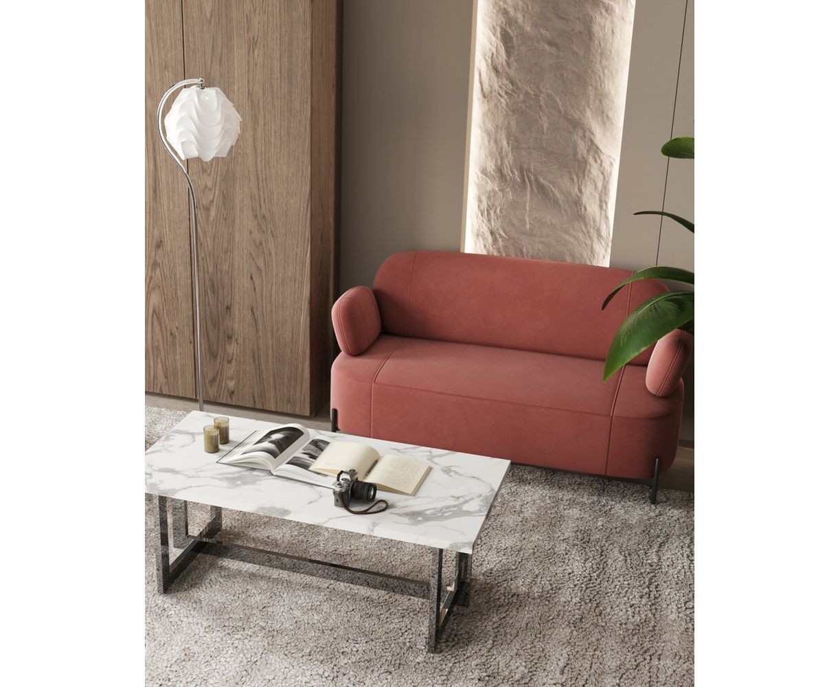 Журнальный столик Нэйтан 122*61 белый мрамор сталь темный хром